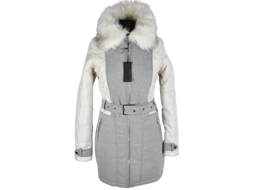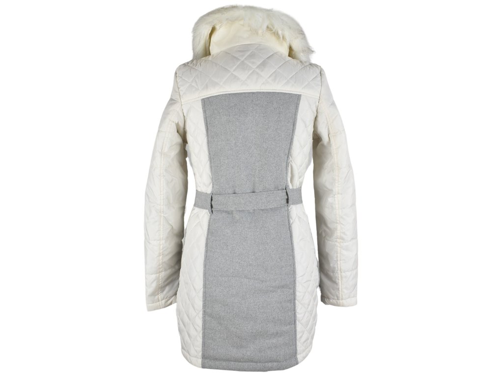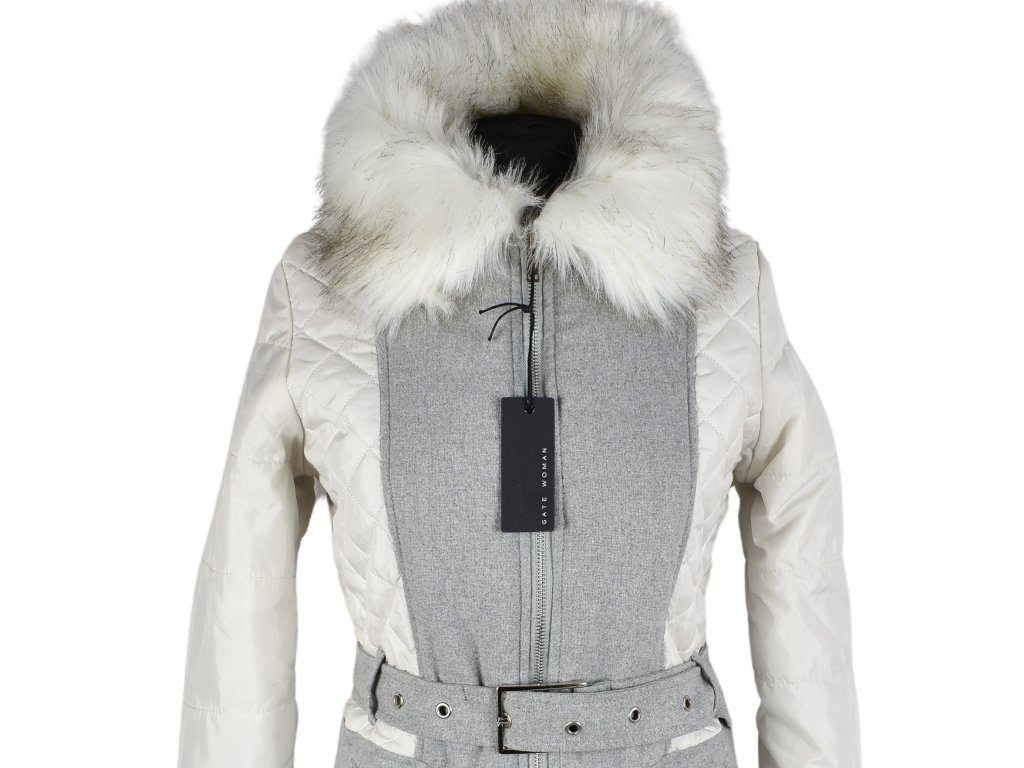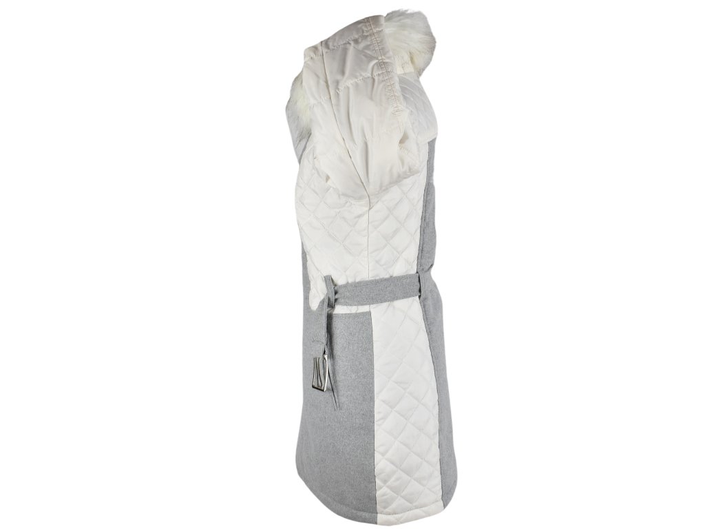 Dámský šedobílý prošívaný kabát s páskem, velikost XS, 100% polyester