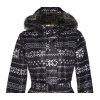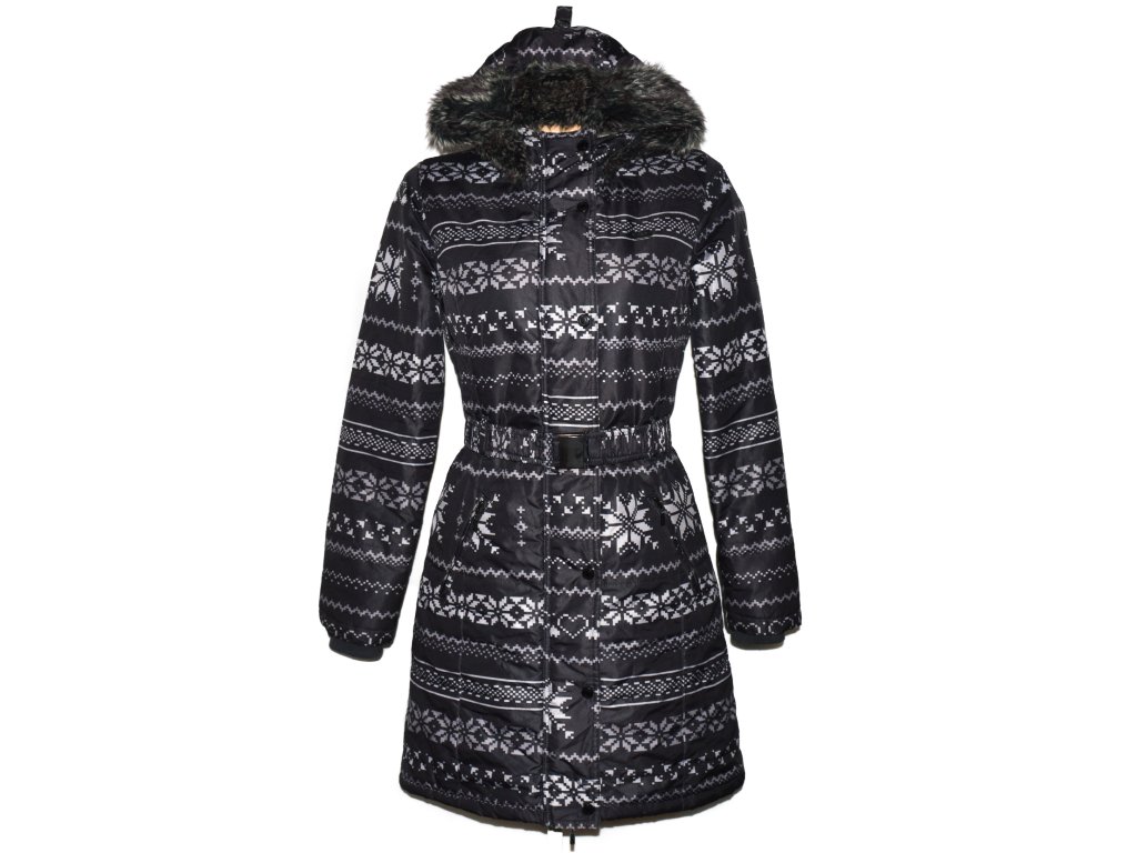 Dámský šedočerný prošívaný vzorovaný kabát s páskem a kapucí Reserved 36
