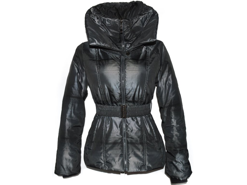 Dámský šedý prošívaný kabát s páskem L