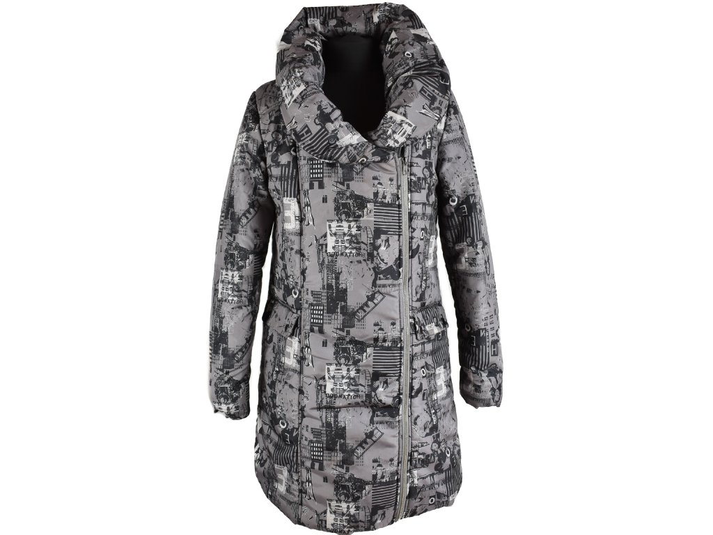 Dámský šedý vzorovaný prošívaný kabát na zip Blancheporte 46/20