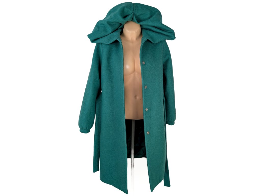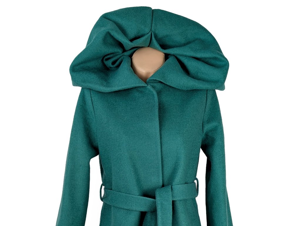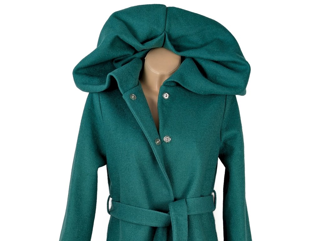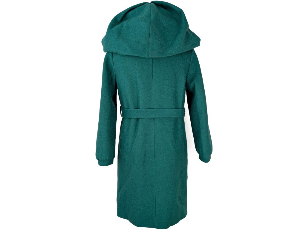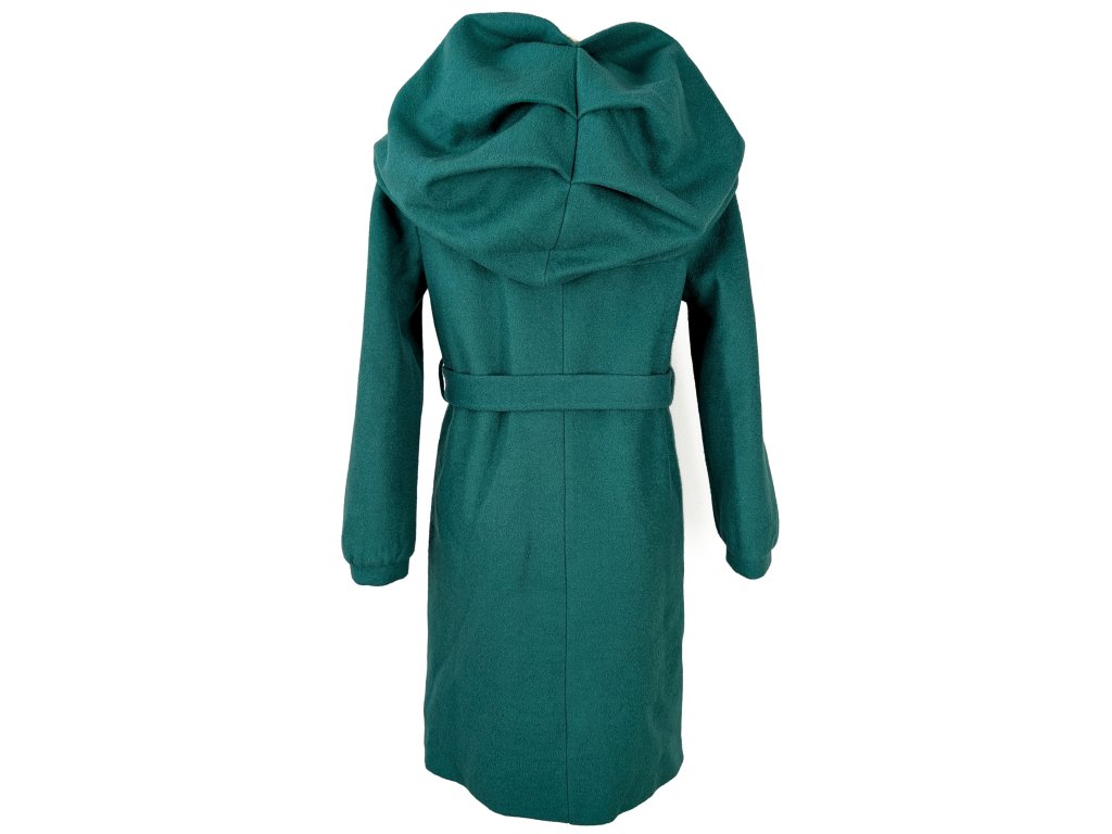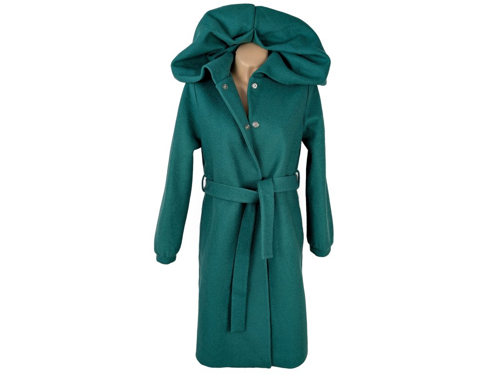 Dámský smaragdový kabát s páskem 40