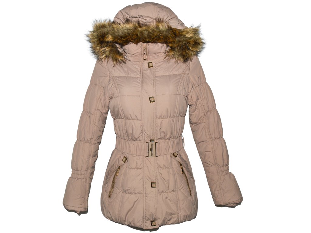 Dámský prošívaný béžový kabát s páskem a kapucí EW Club S/M