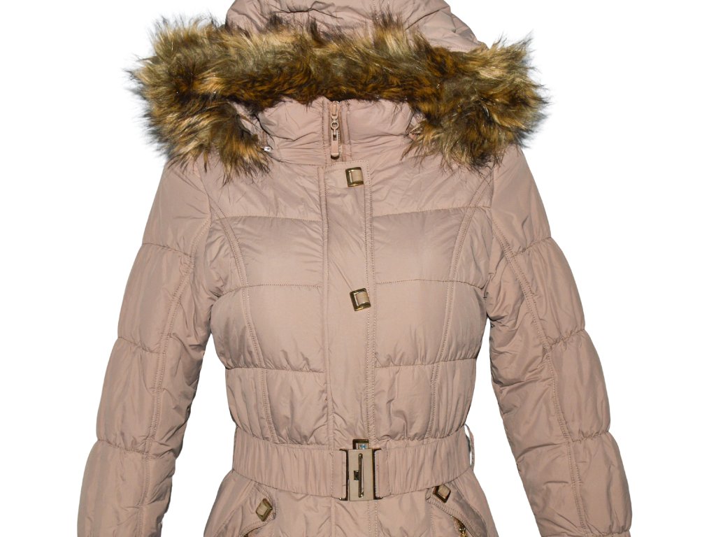 Dámský prošívaný béžový kabát s páskem a kapucí EW Club S/M