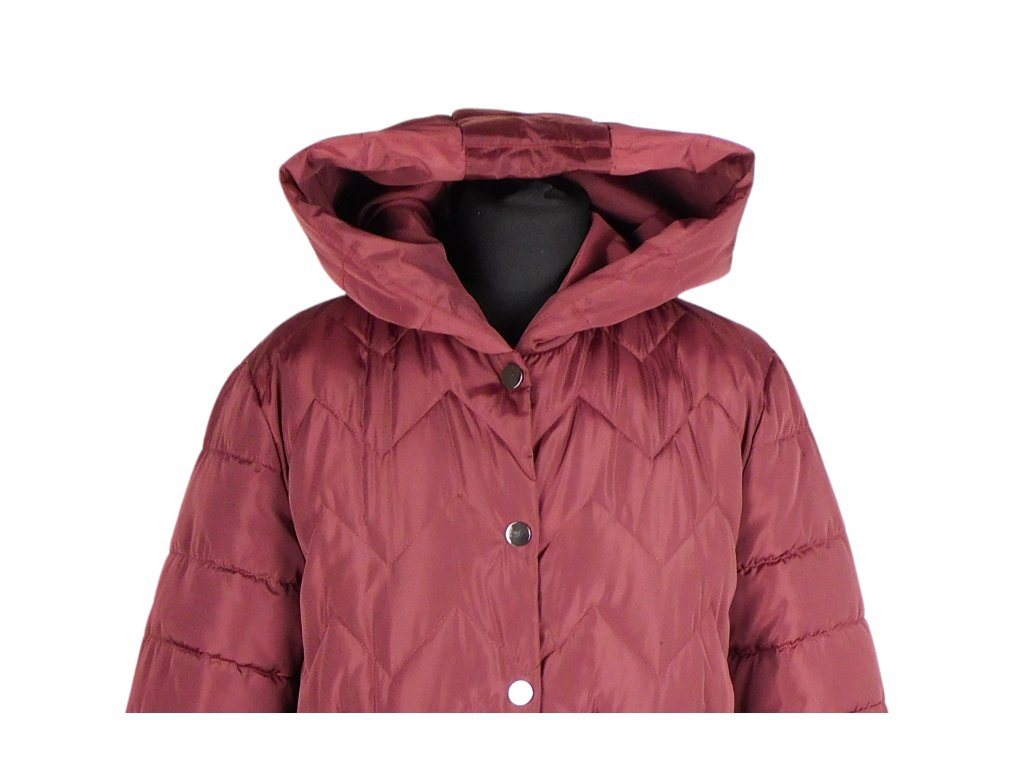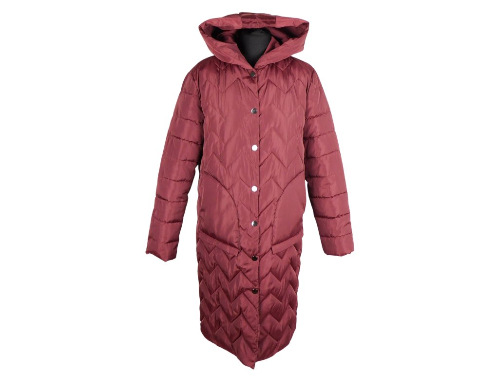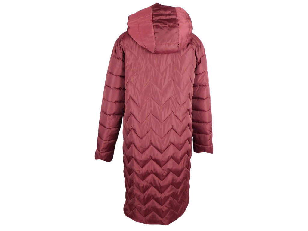 Dámský vinový prošívaný dlouhý kabát s kapucí FASHION L*