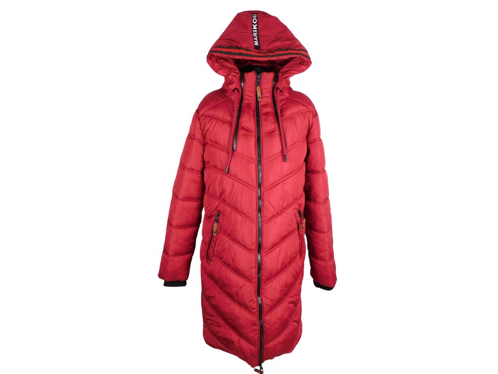 Dámský vínový prošívaný kabát s kapucí MARIKOO L*