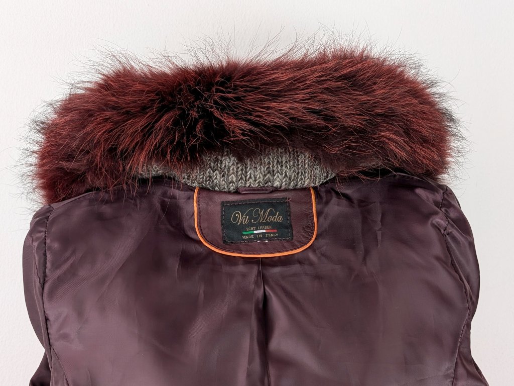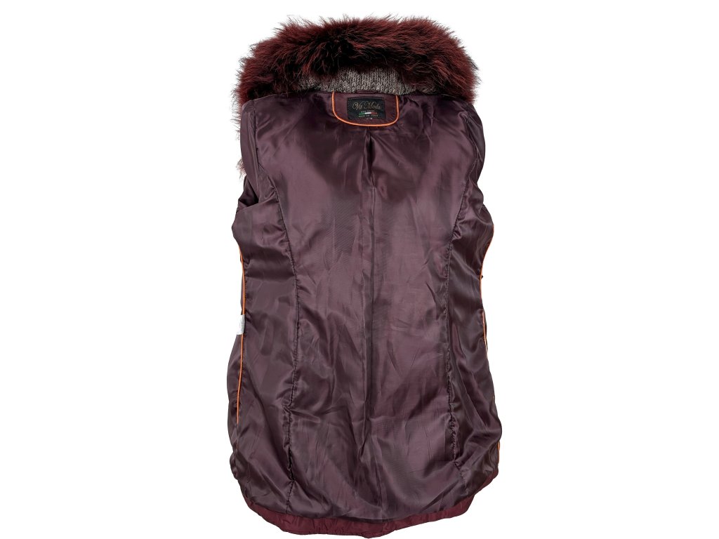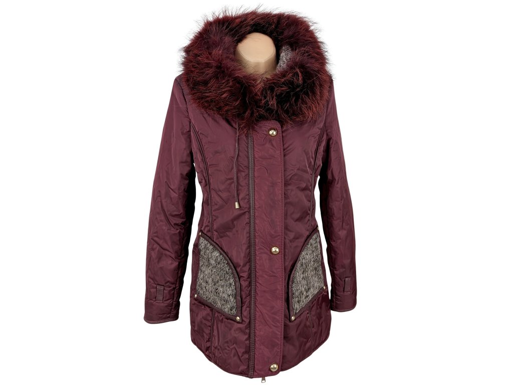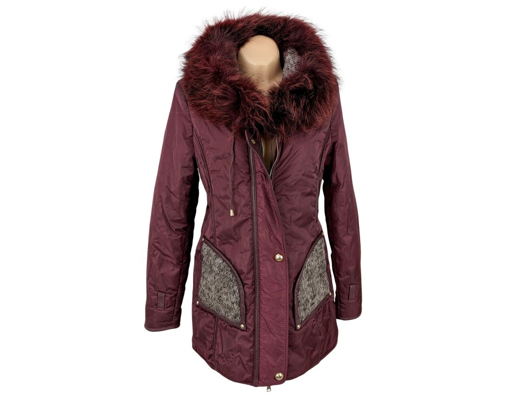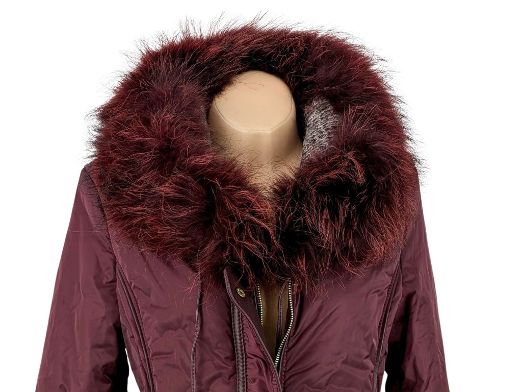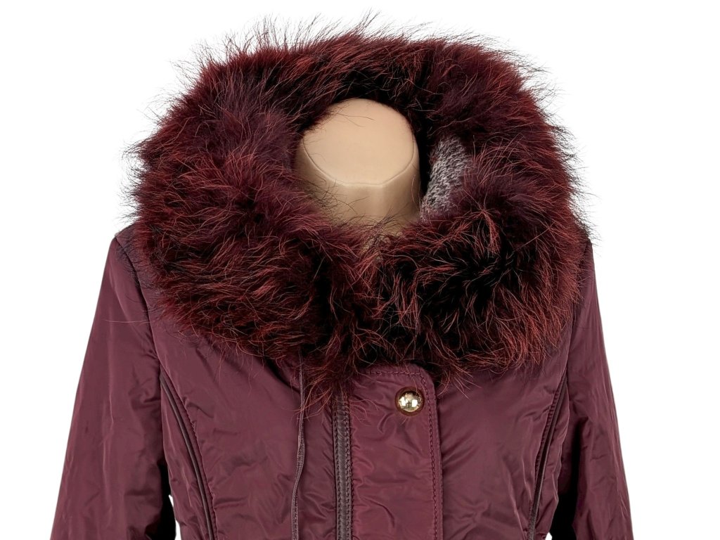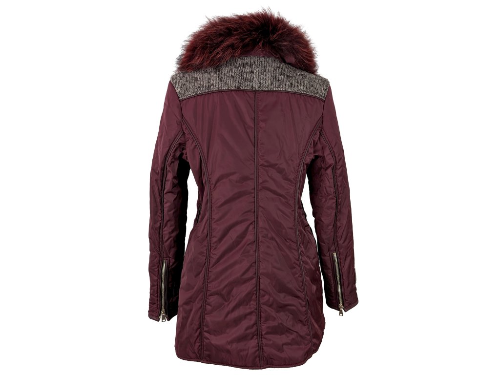 Dámský vínový prošívaný kabát s pravou kožešinou L