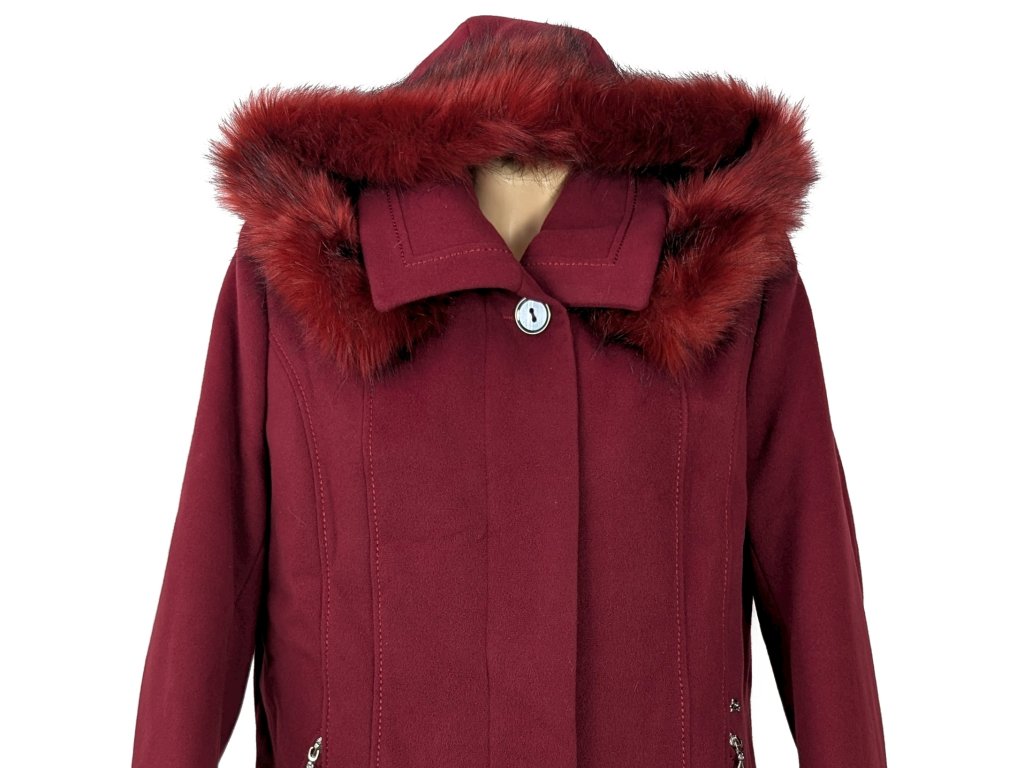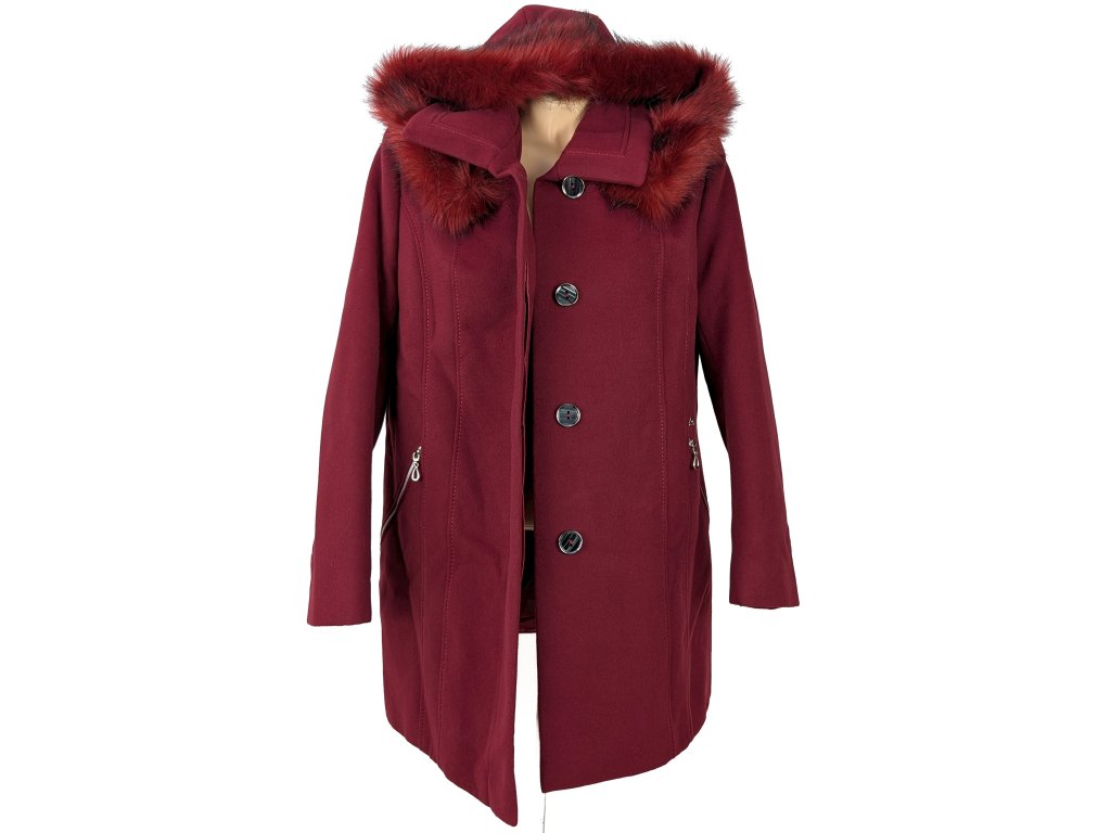 Dámský vínový zimní kabát s kapucí OLA XL