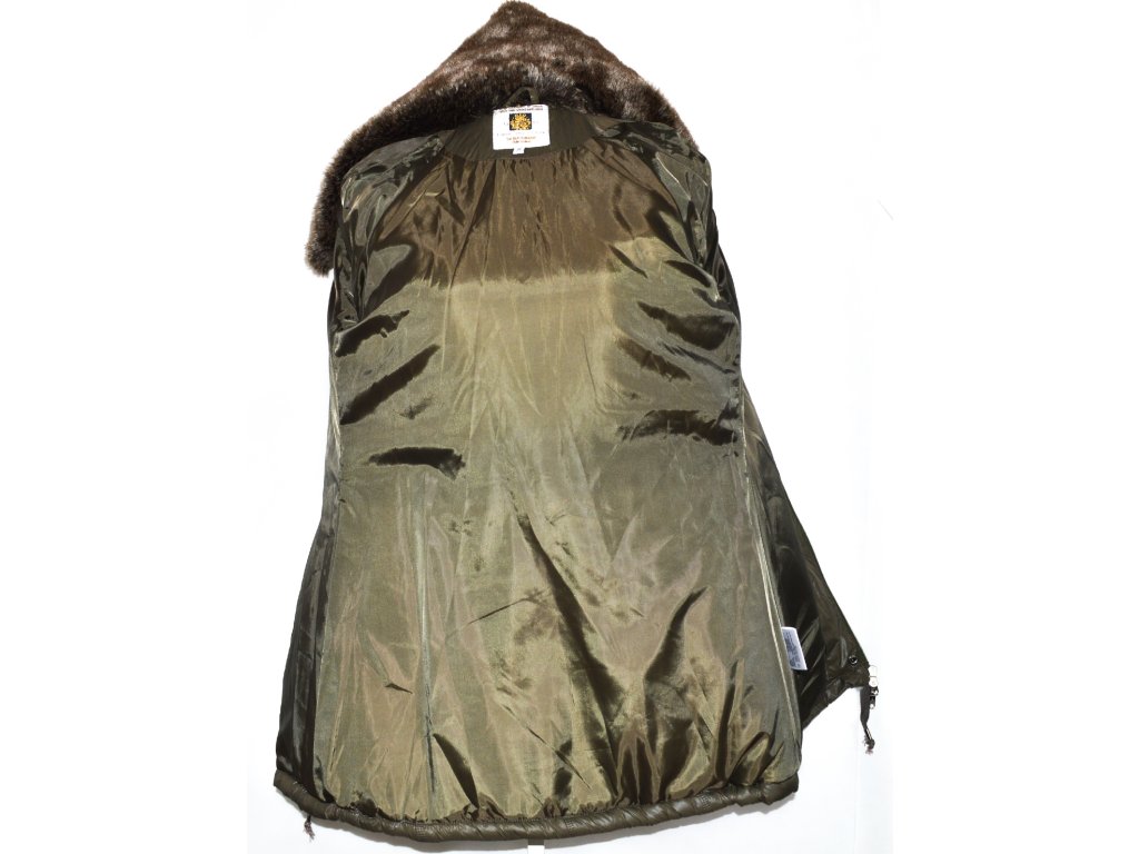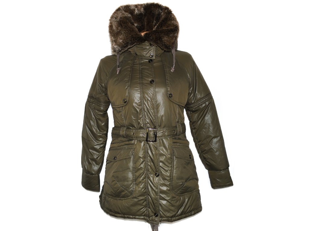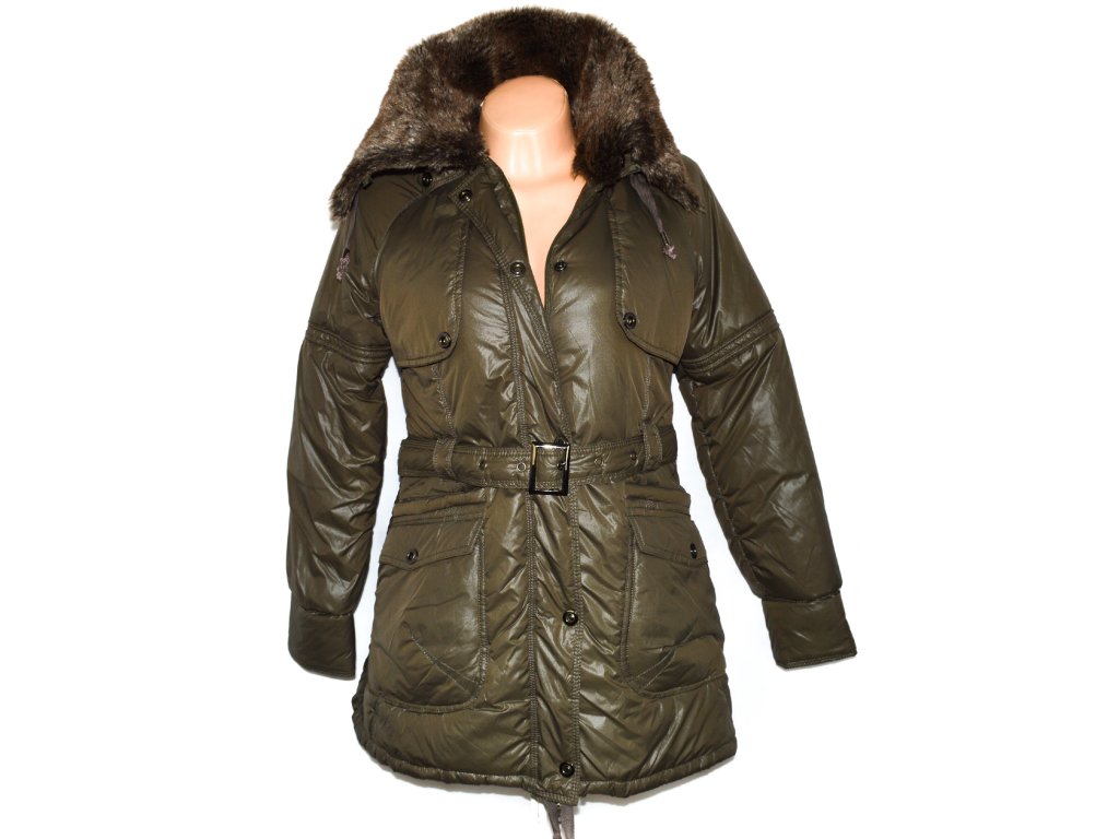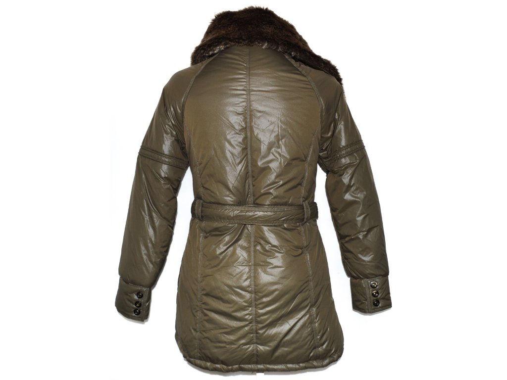 Dámský zelený šusťákový kabát s páskem a kožíškem FOREST S