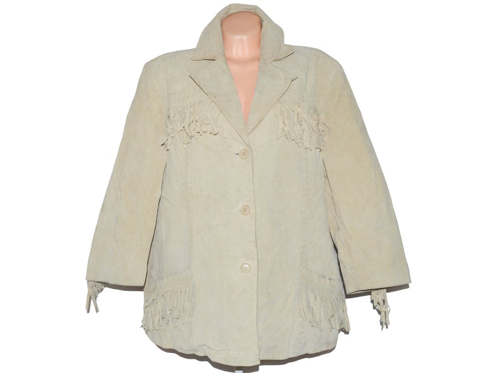 Kožená bunda, dámská béžová broušená bunda, velikost XXXL, zateplená, střapce