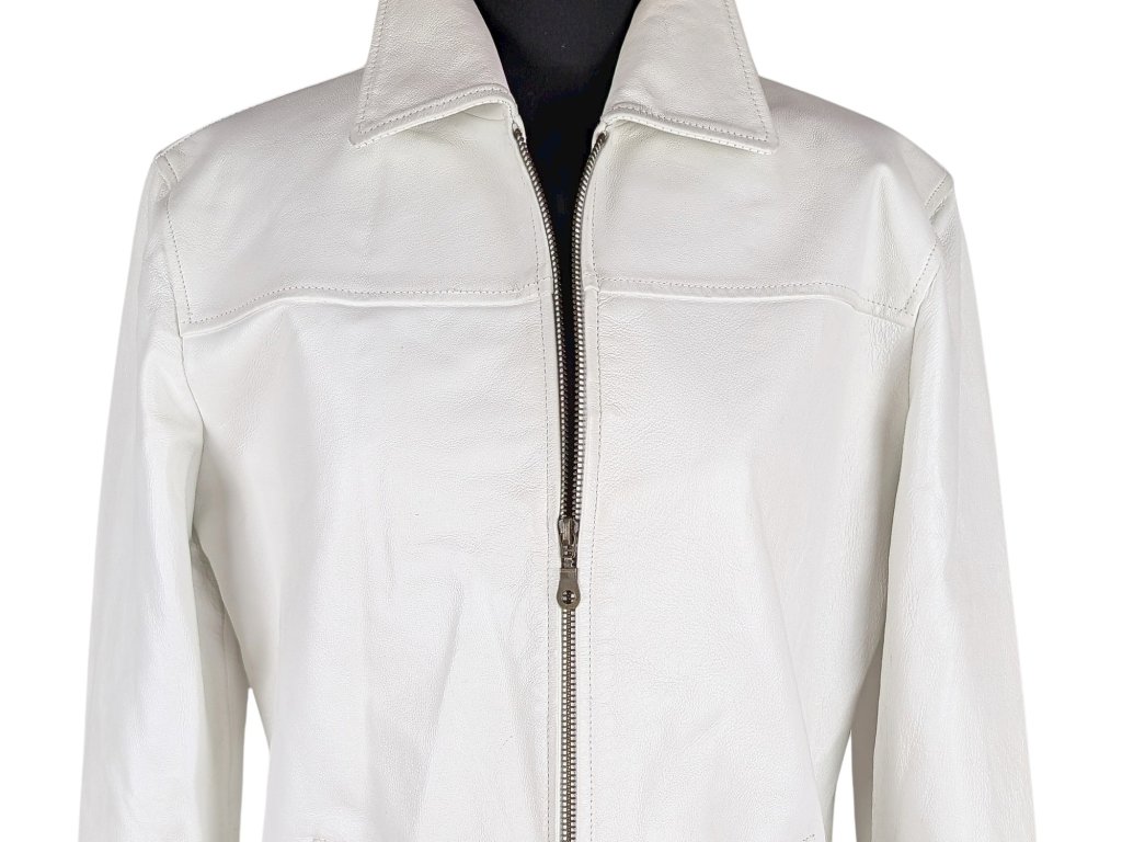 KOŽENÁ dámská bílá bunda na zip Calypso 40