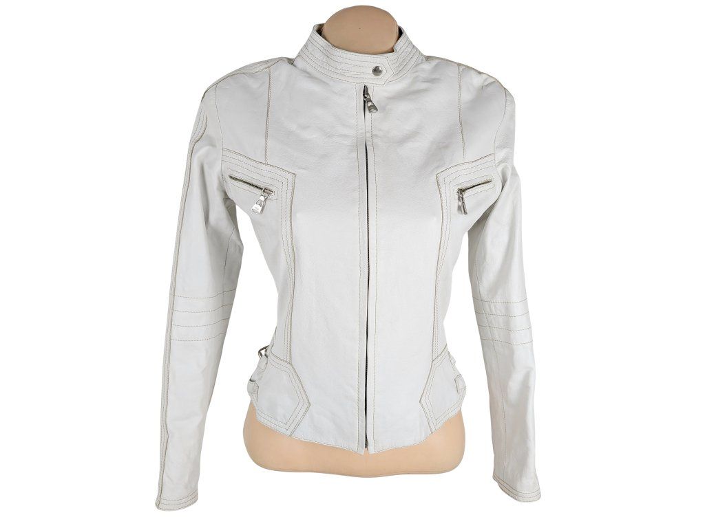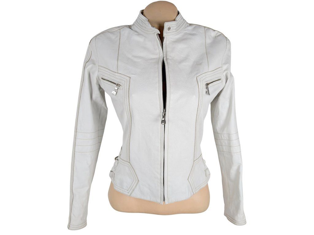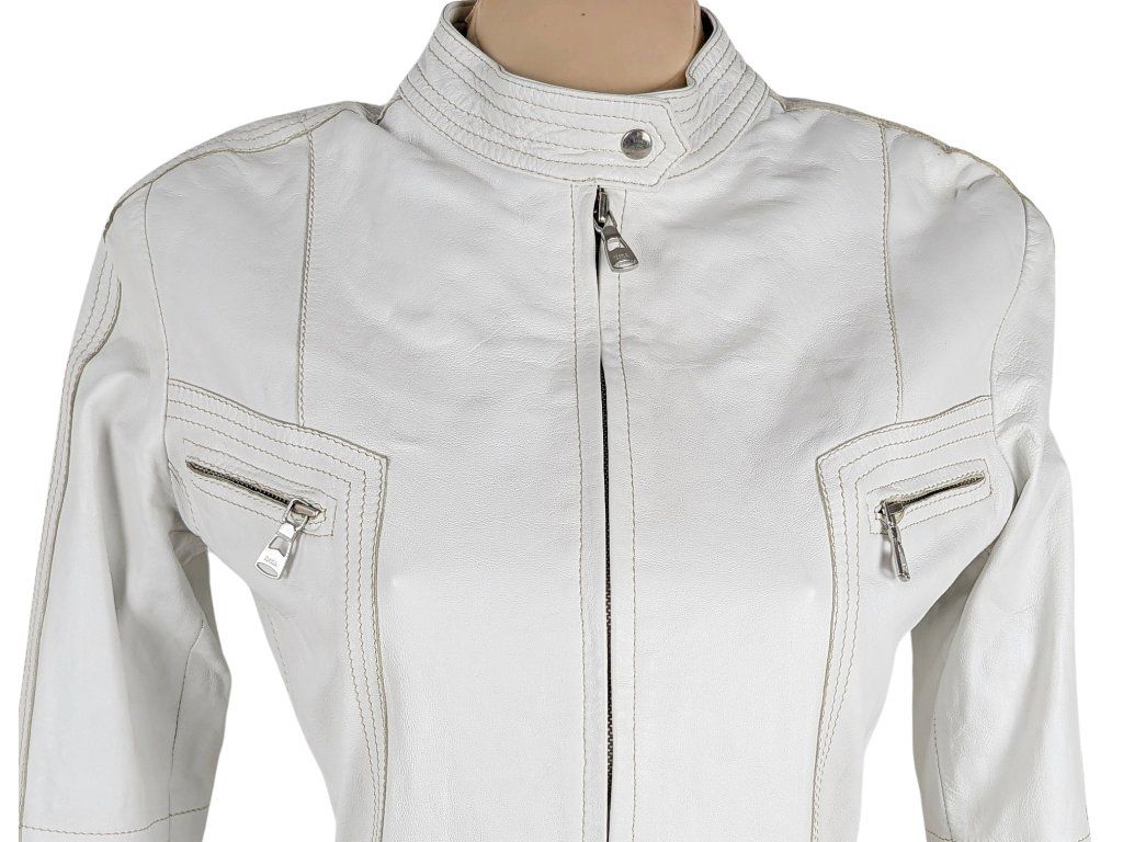 KOŽENÁ dámská bílá bunda na zip KARA 36