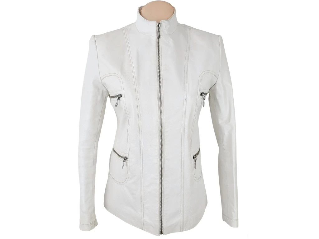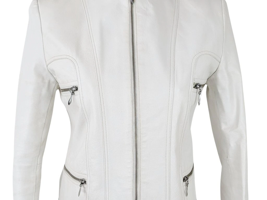 KOŽENÁ dámská bílá bunda na zip MARTINEK S