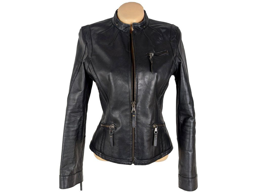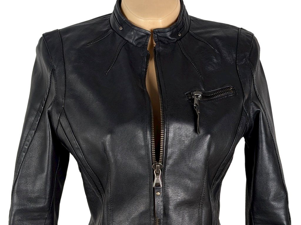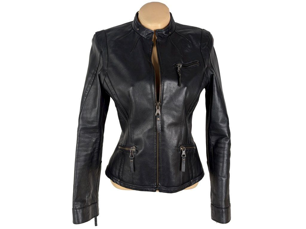 KOŽENÁ dámská černá bunda na zip AMISU M