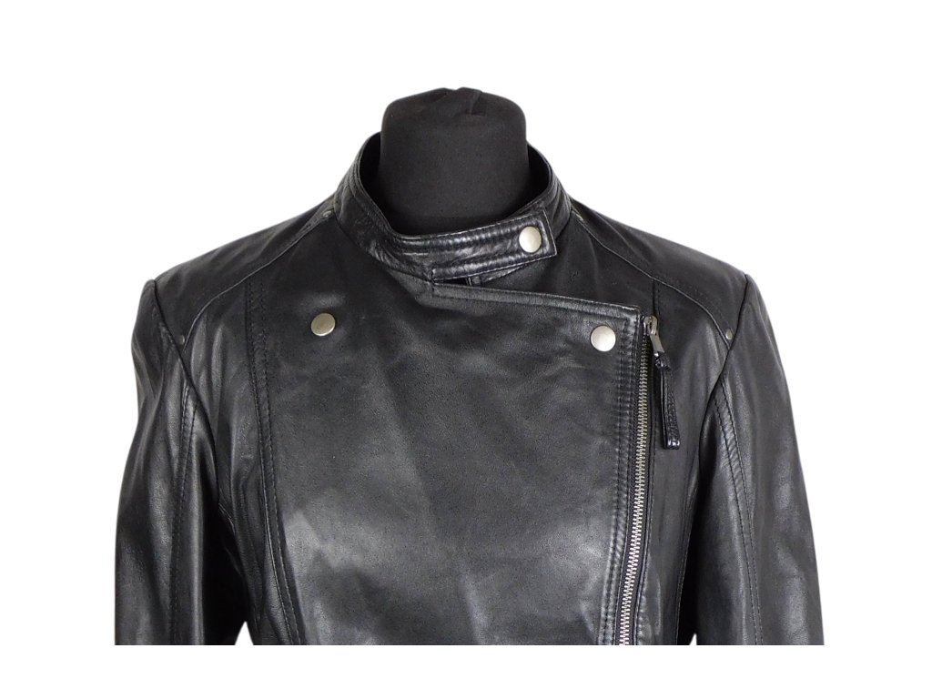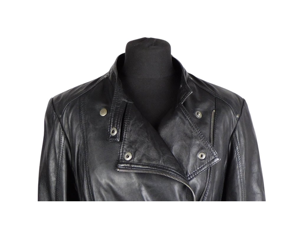Kožená dámská černá bunda na zip křivák CAMAIEU