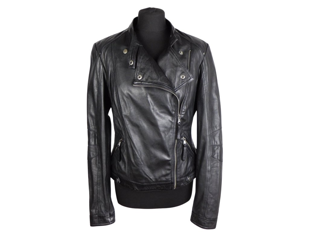 Kožená dámská černá bunda na zip křivák CAMAIEU M*