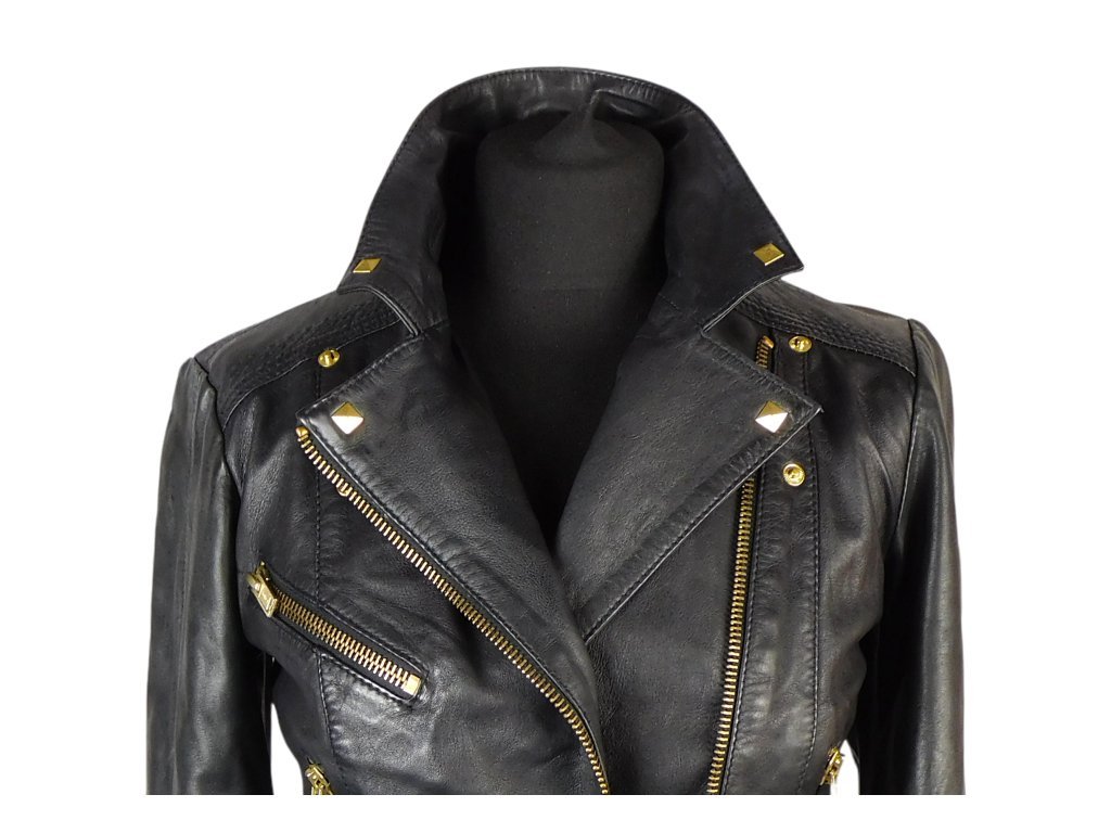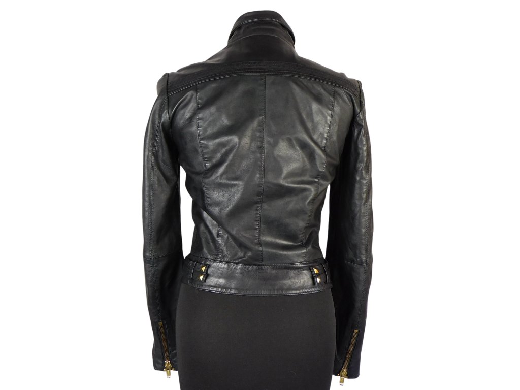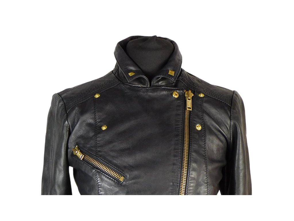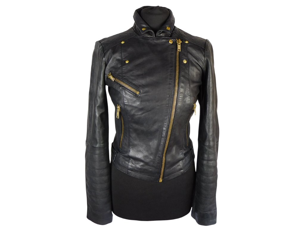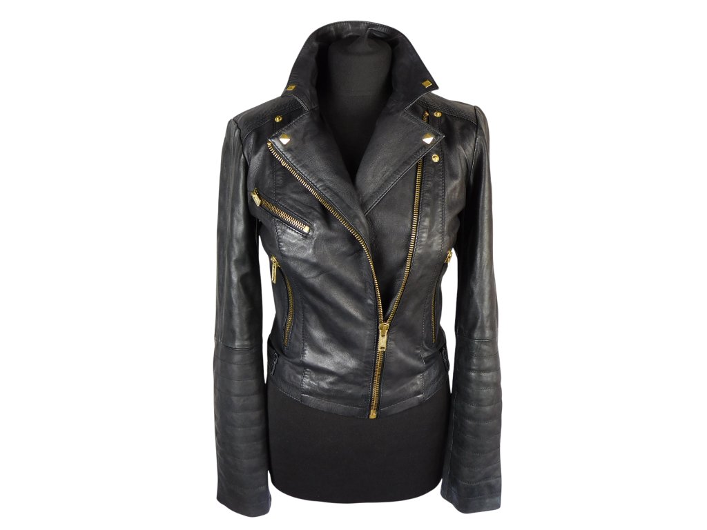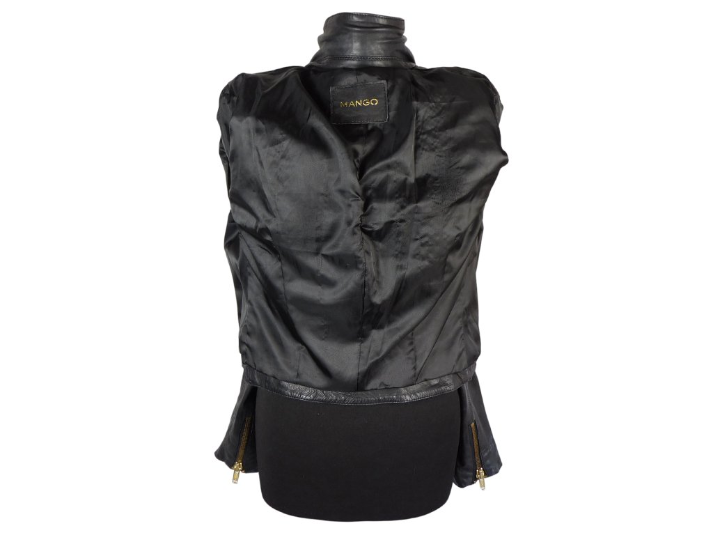 Kožená dámská černá bunda na zip křivák MANGO S*