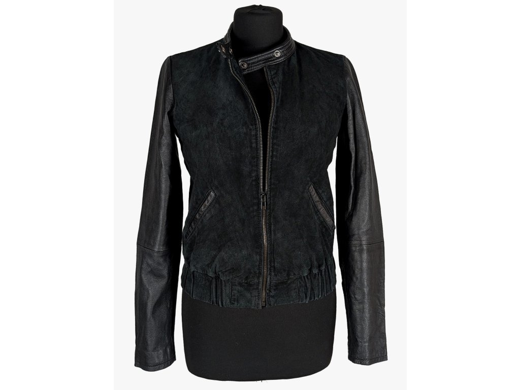KOŽENÁ dámská černá bunda na zip MANGO XS