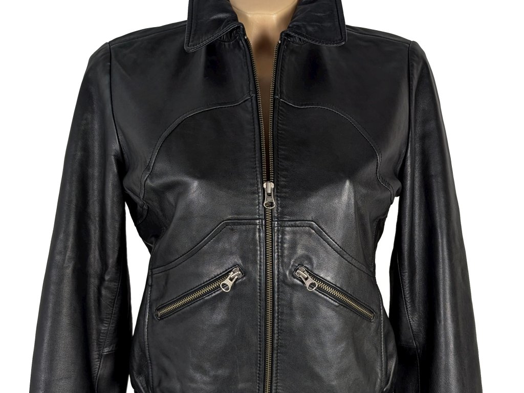 KOŽENÁ dámská černá bunda na zip Marks&Spencer M
