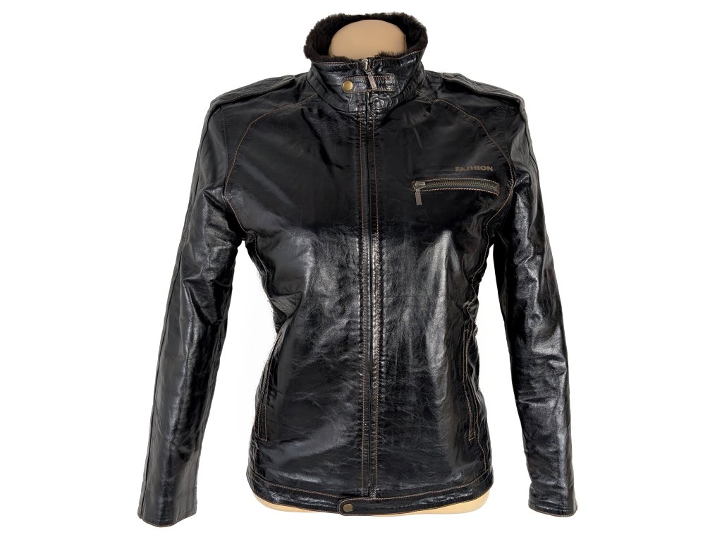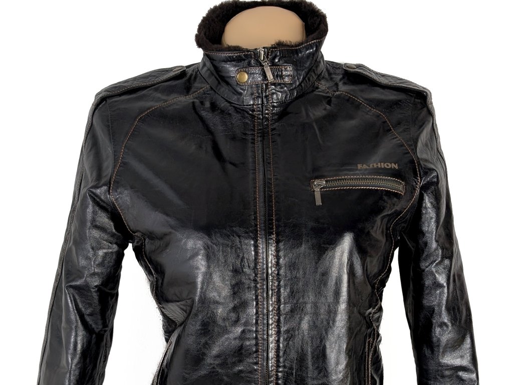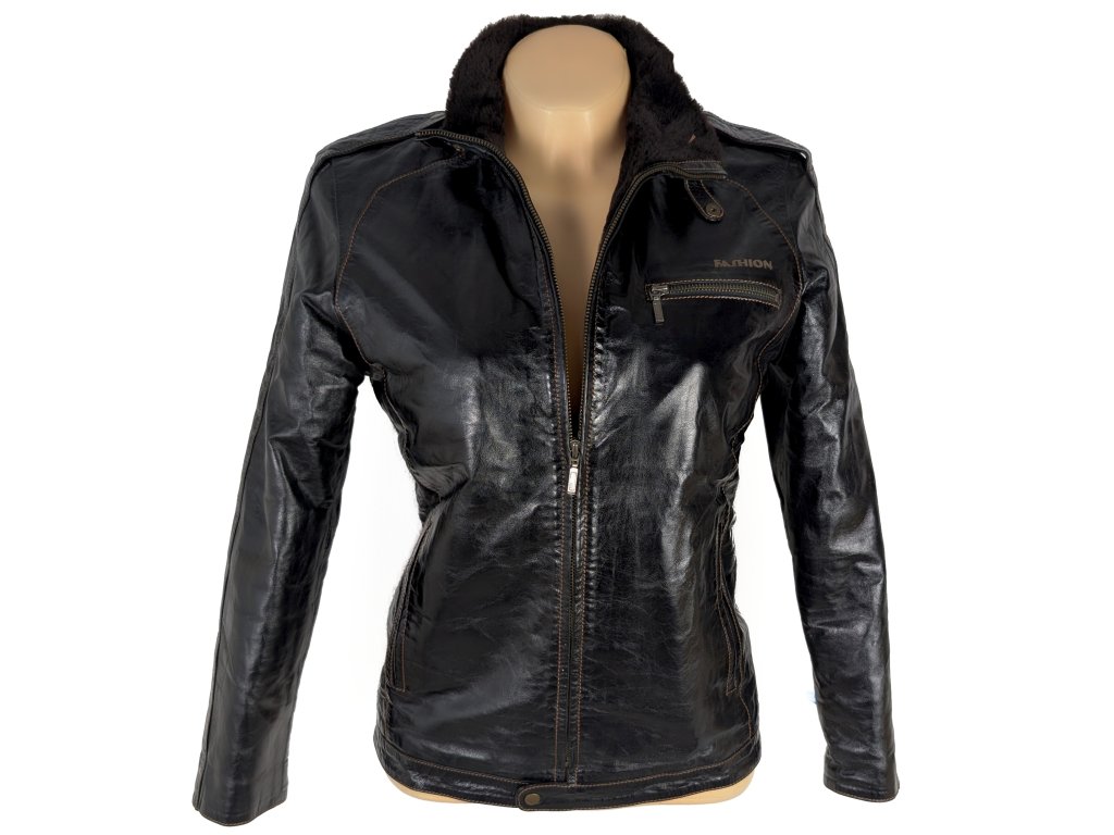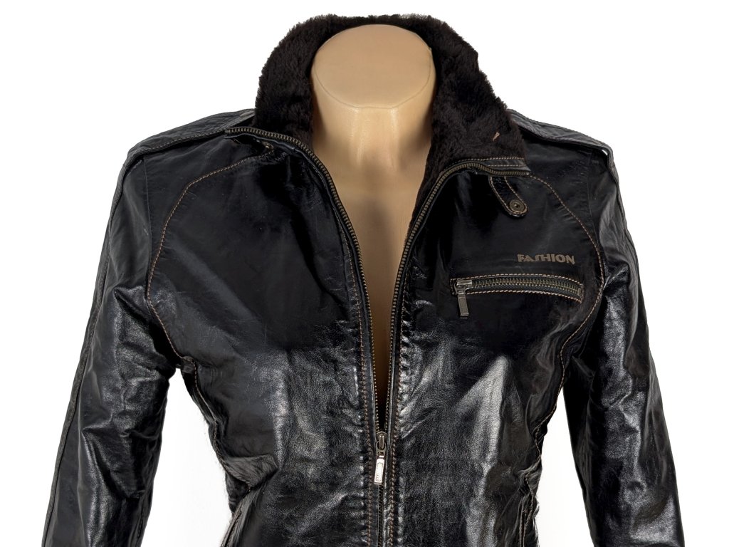 KOŽENÁ dámská černá zimní bunda na zip XS