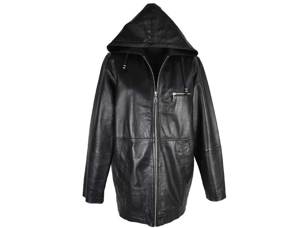 KOŽENÁ dámská černá měkká bunda na zip s kapucí Woodpecker M/L, XXXL