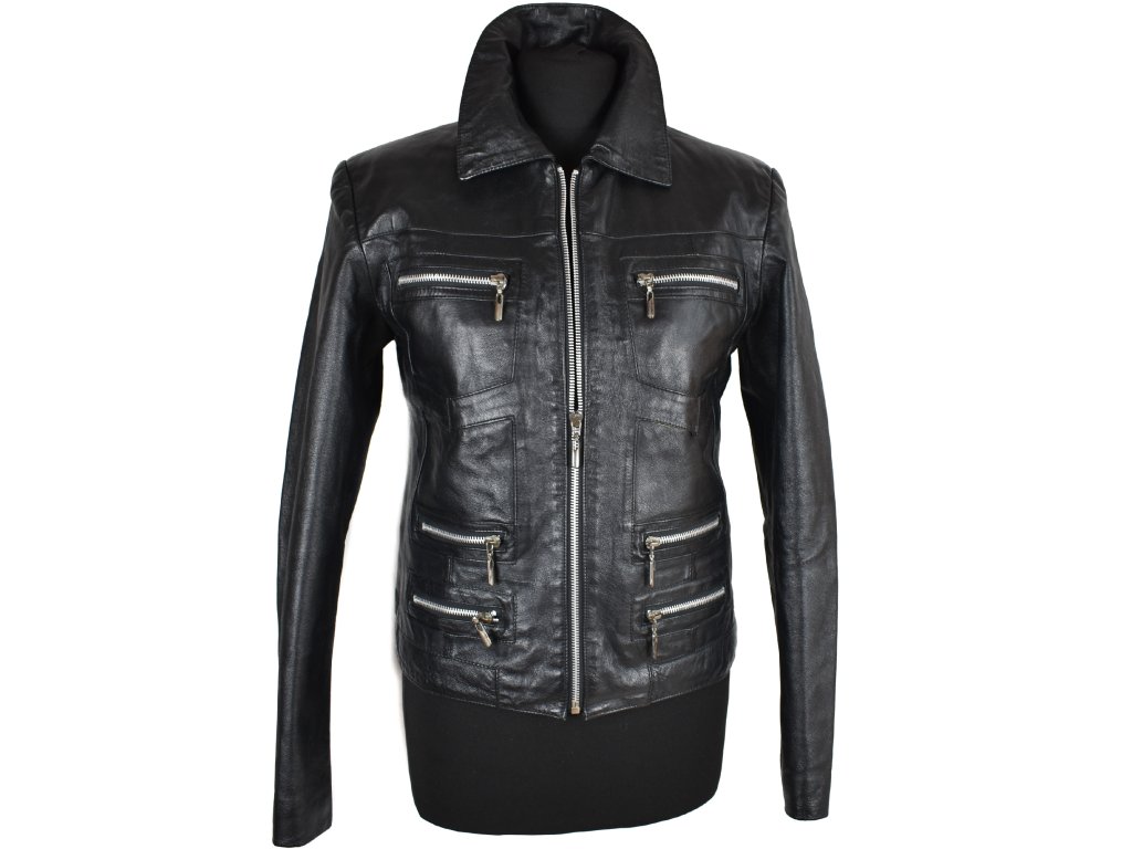 KOŽENÁ dámská černá měkká bunda na zip Woodpecker S/M, M
