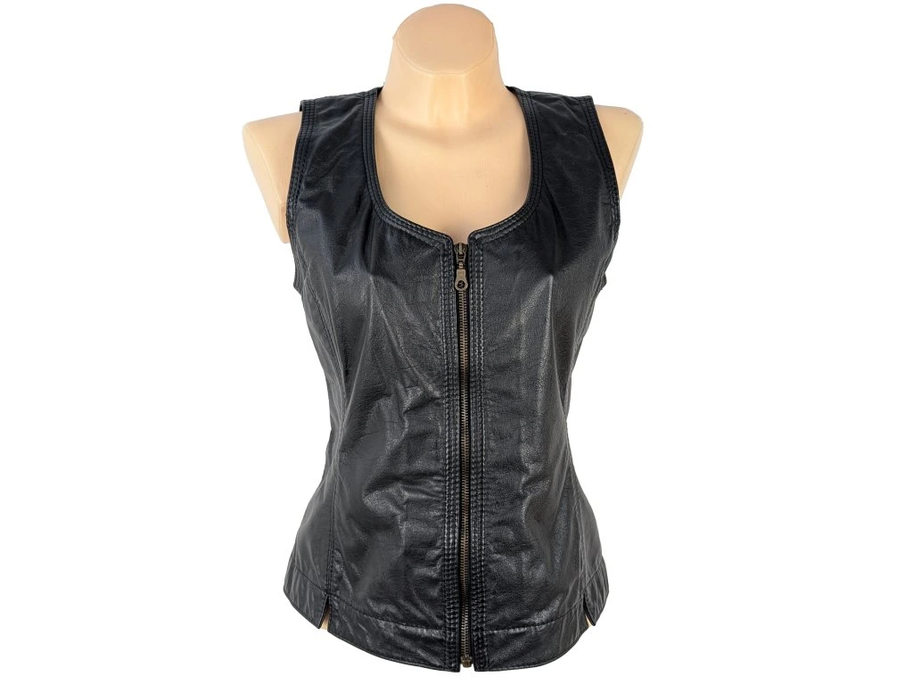 KOŽENÁ dámská černá vesta na zip L