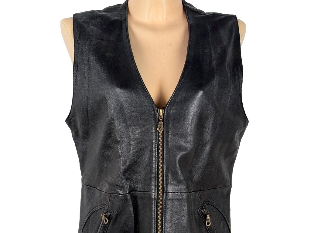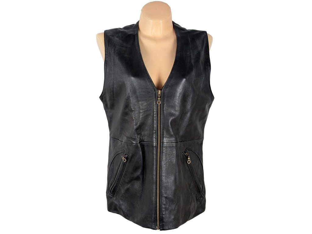 KOŽENÁ dámská černá vesta na zip XL