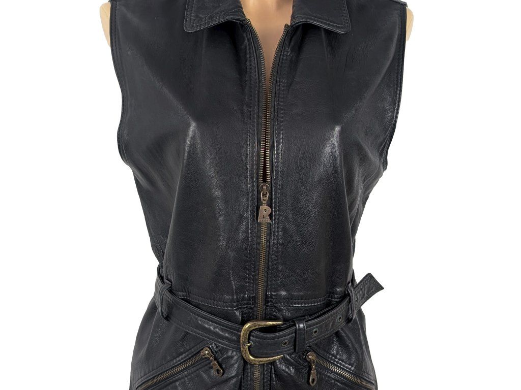 KOŽENÁ dámská černá vesta s páskem REBEL XL