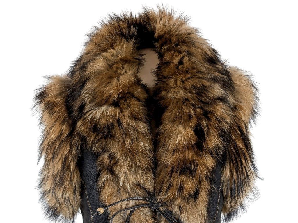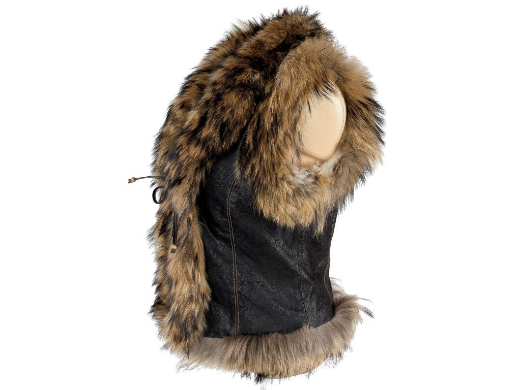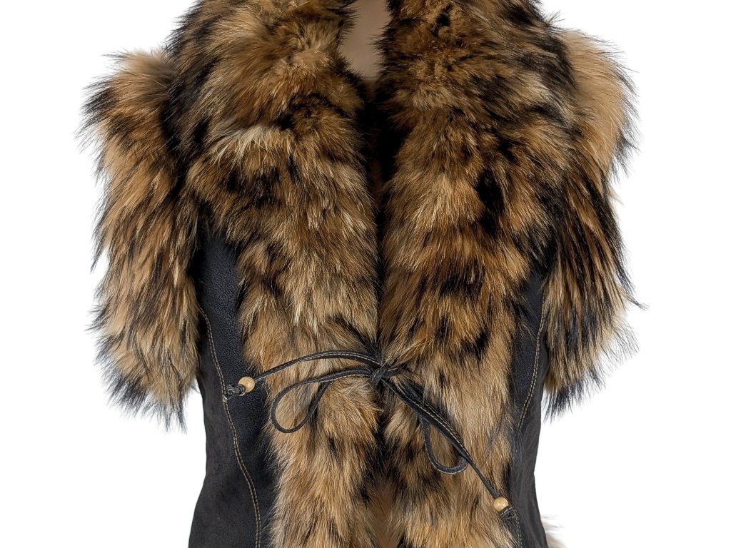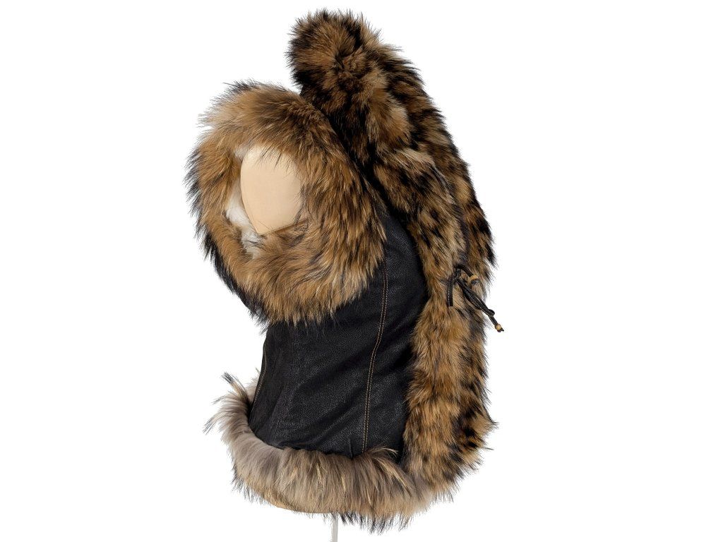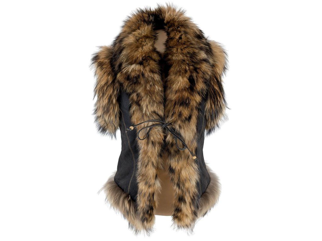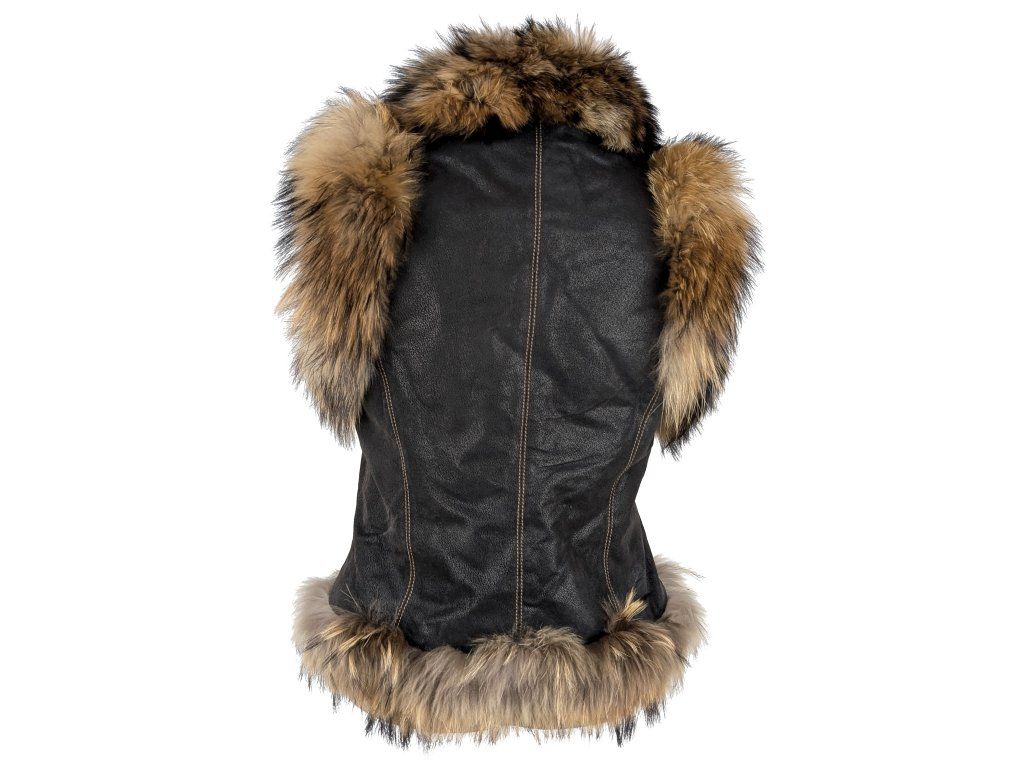 KOŽENÁ dámská černá vesta s pravou kožešinou S - M