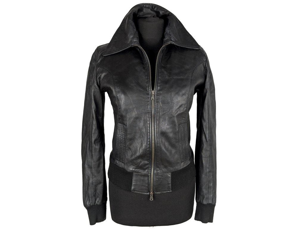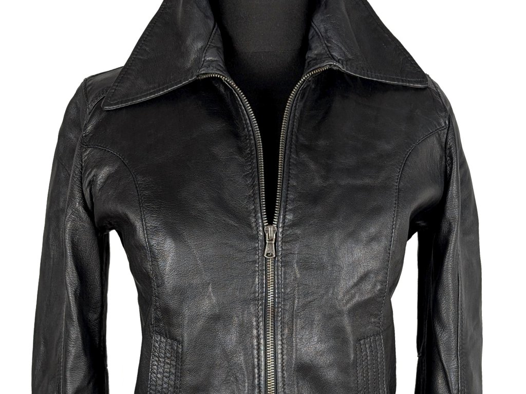 KOŽENÁ dámská černá zateplená bunda na zip S