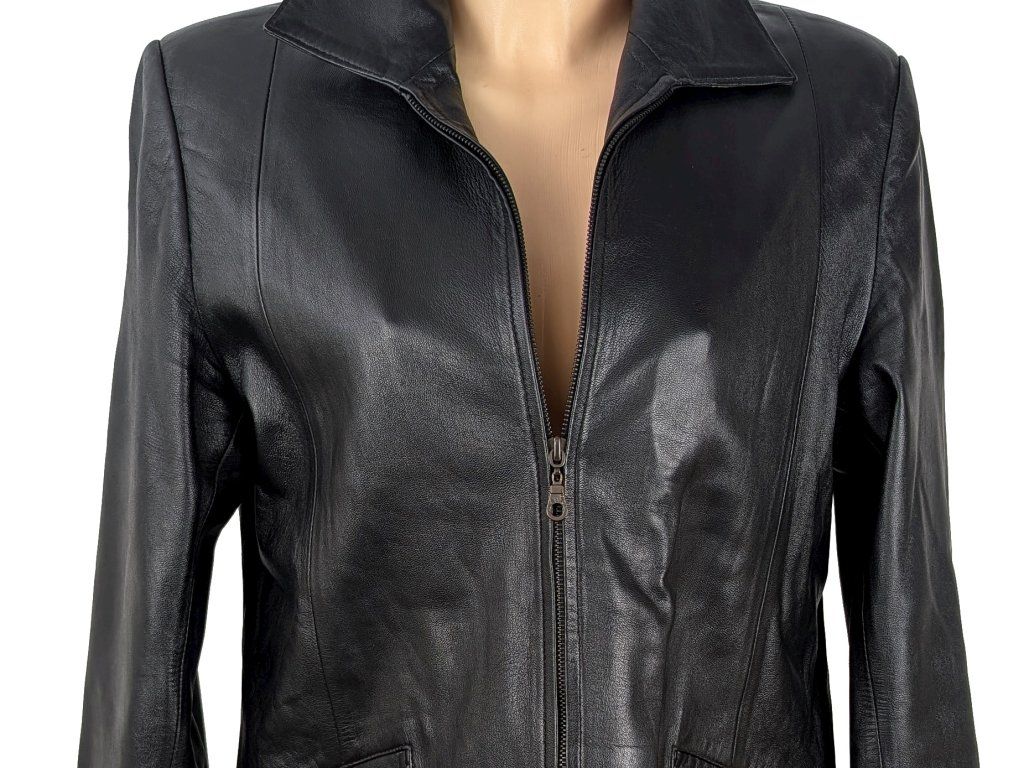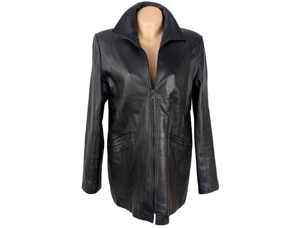 KOŽENÁ dámská černá zateplená bunda na zip XL