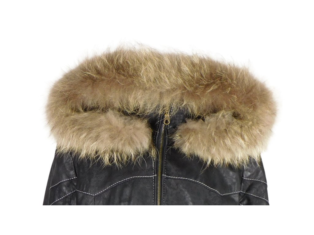 Kožená dámská černá zateplená bunda s pravou kožešinou KOCMAN