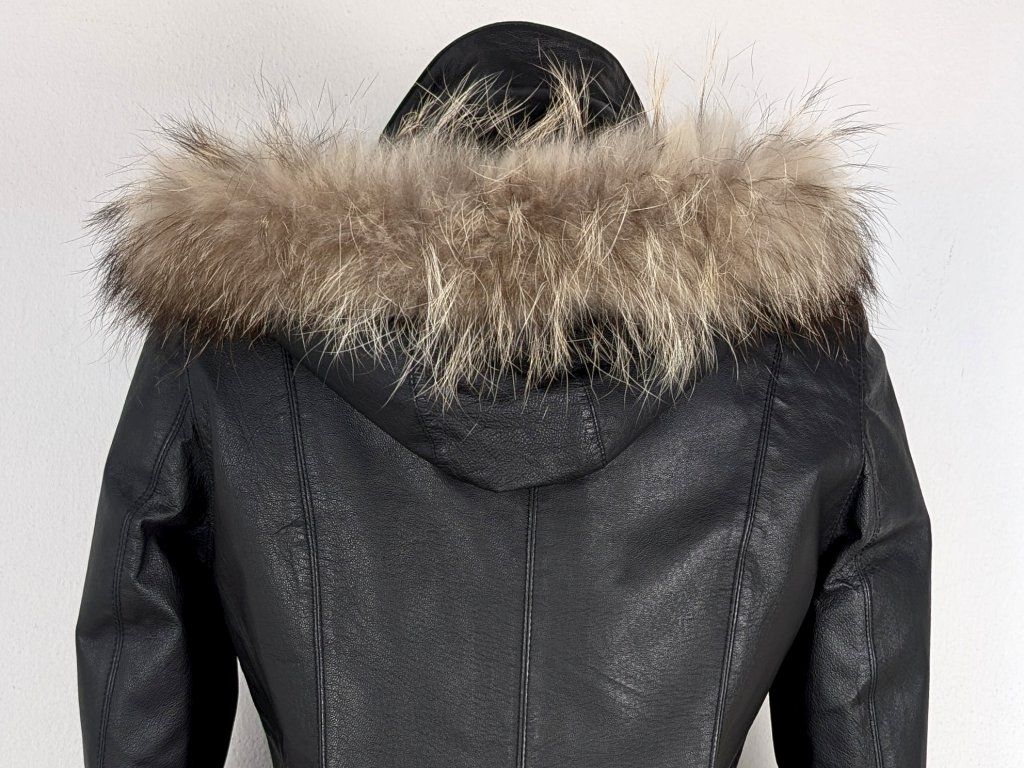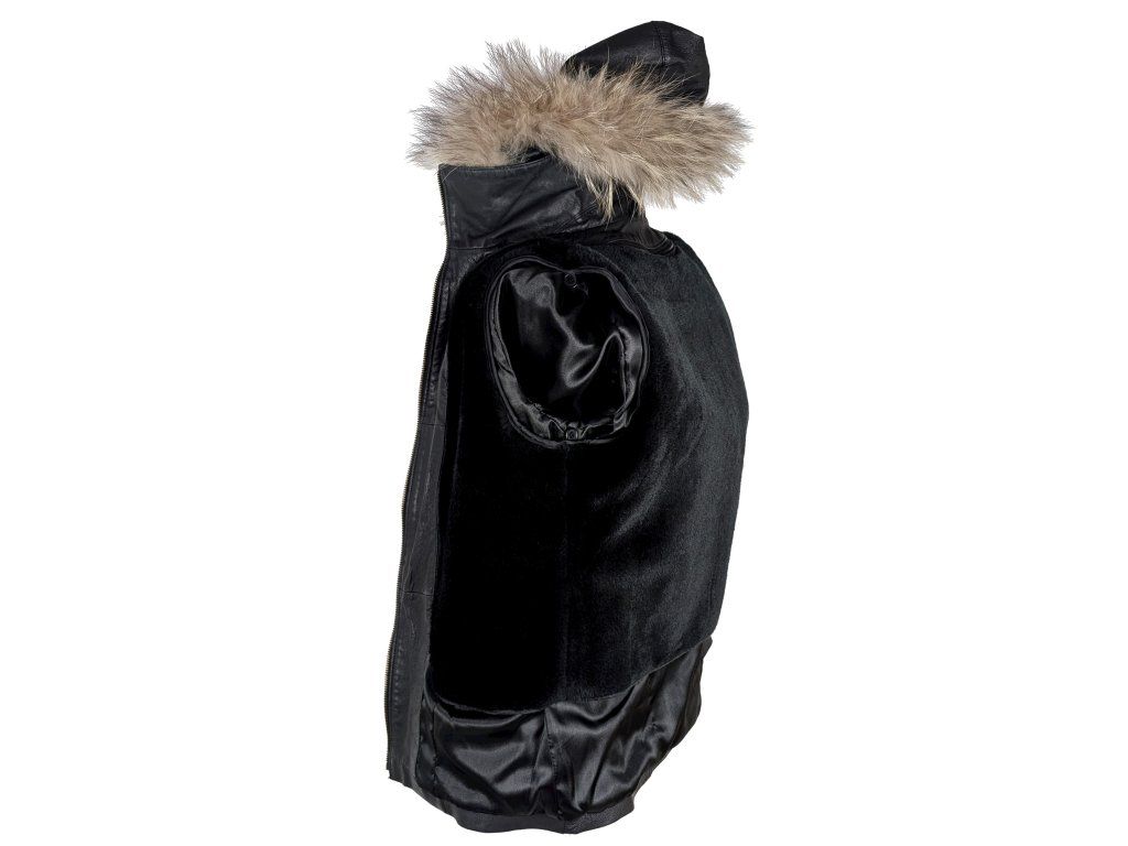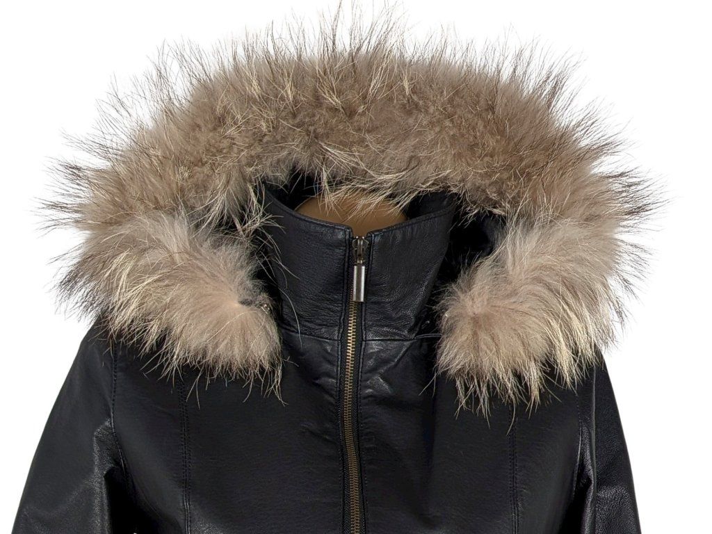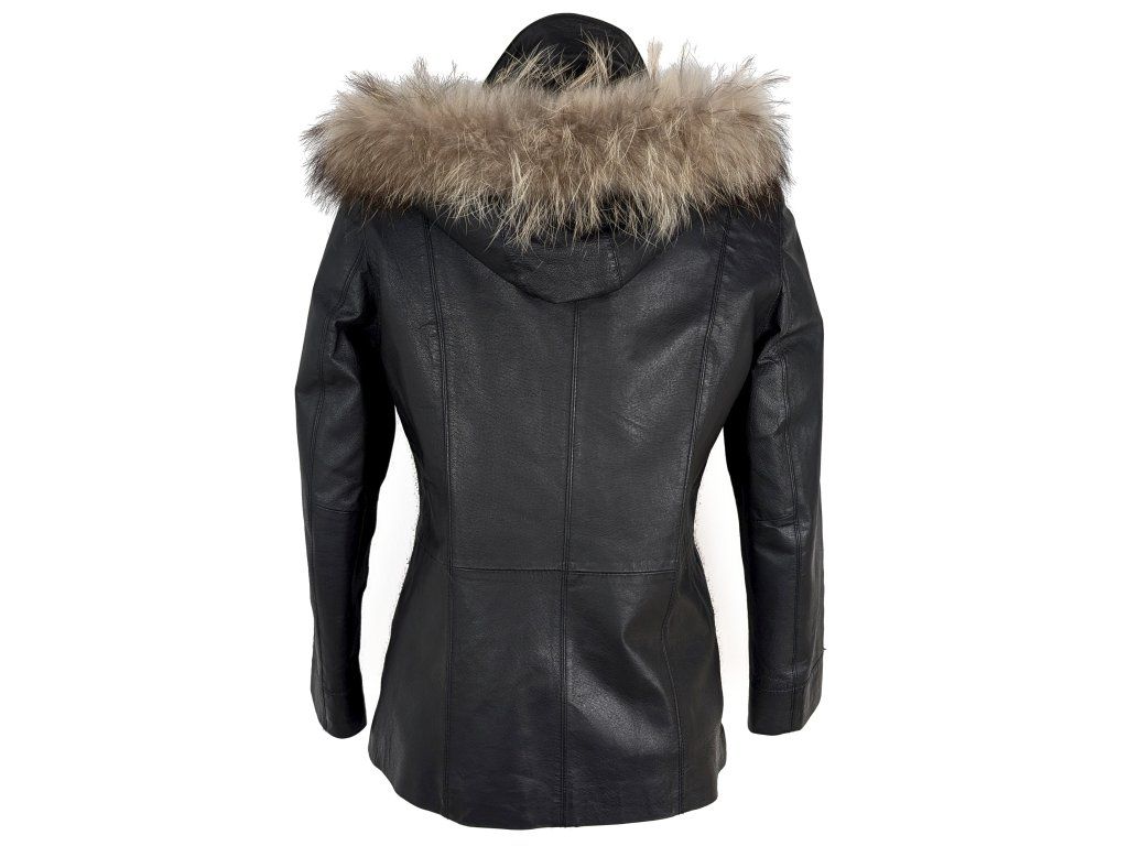 KOŽENÁ dámská černá zimní bunda s kapucí s pravou kožešinou a odnímatelnou zimní vložkou S