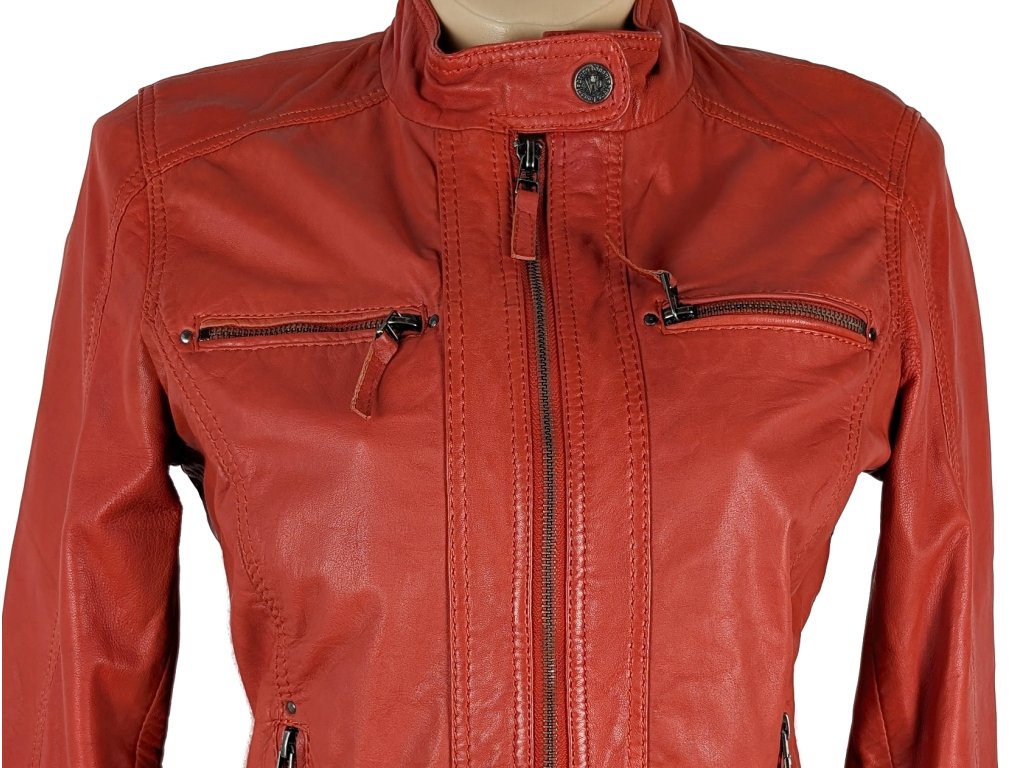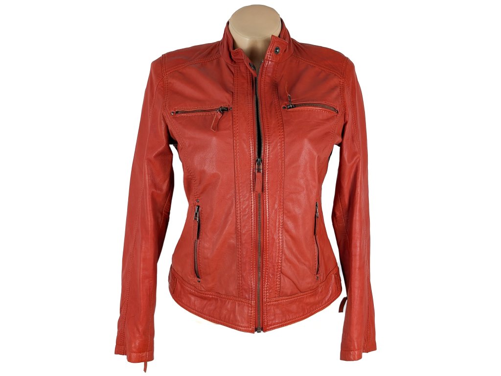 KOŽENÁ dámská červená bunda na zip BRUNO BANANI M