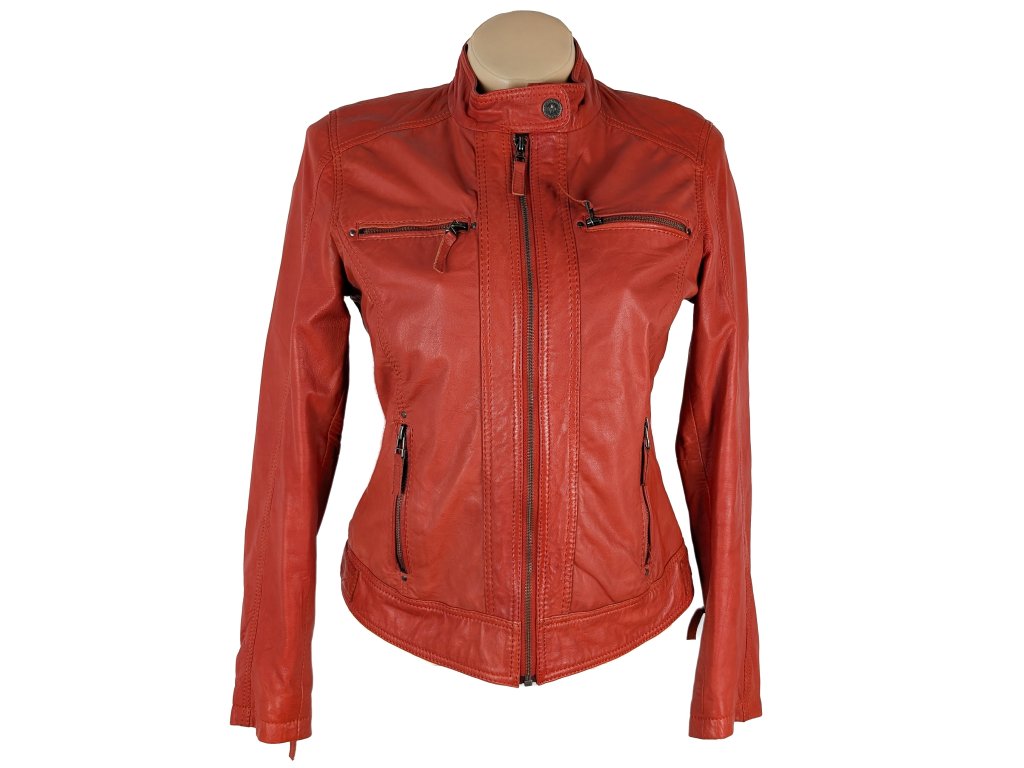 KOŽENÁ dámská červená bunda na zip BRUNO BANANI M