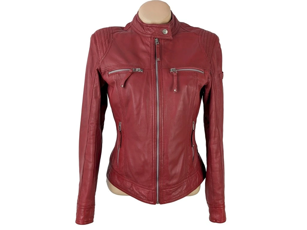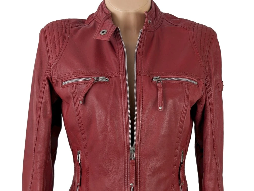 KOŽENÁ dámská červená bunda na zip CABRINI 36