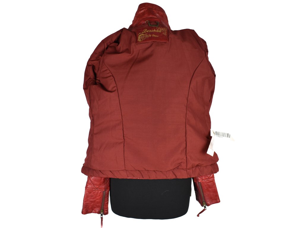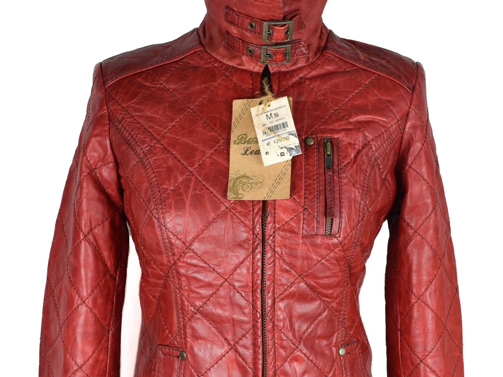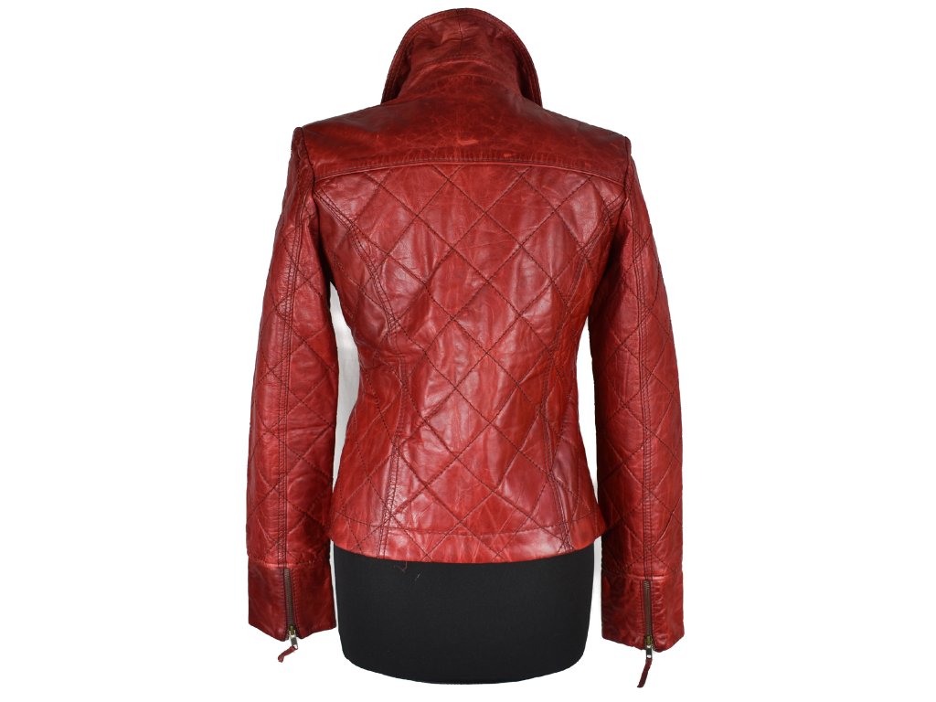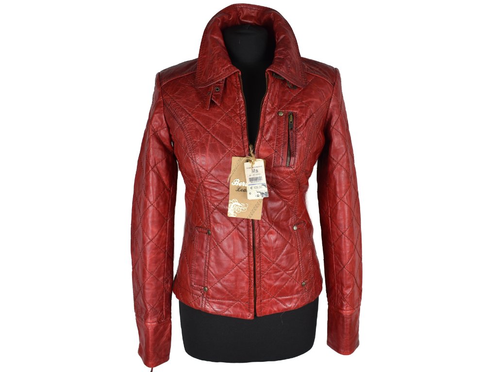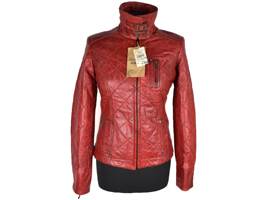 KOŽENÁ dámská červená měkká prošívaná bunda na zip Bershka XS - s cedulkou