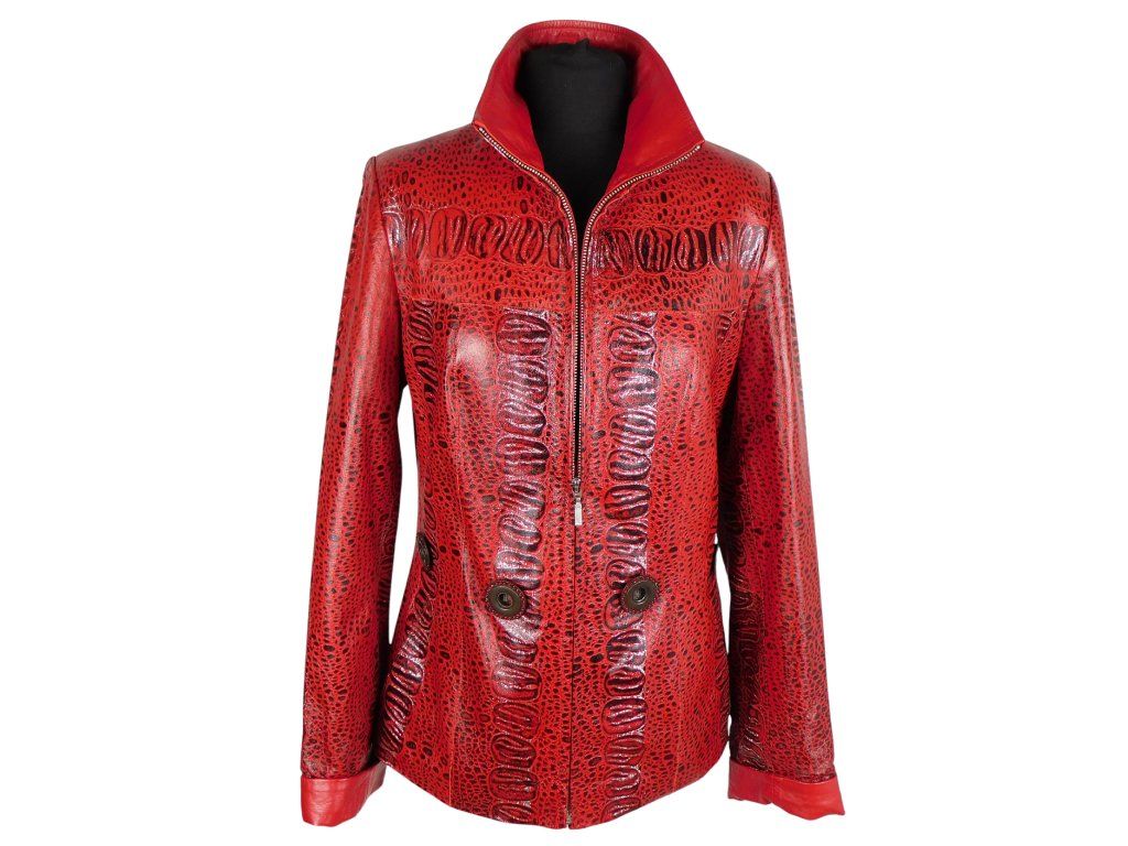 Kožená dámská červená extravagantní bunda ARAGVI-SA S*
