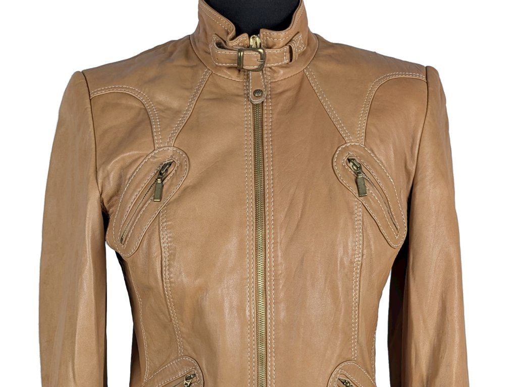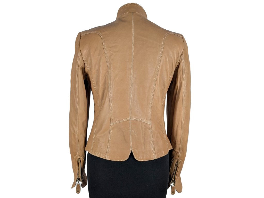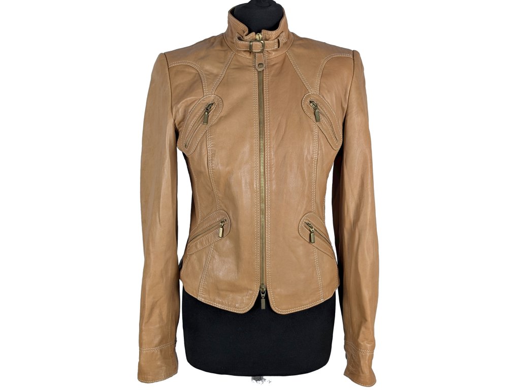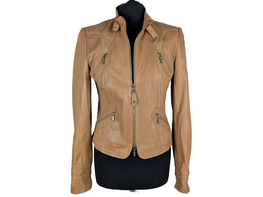 KOŽENÁ dámská hnědá bunda na zip BIBA 10/36