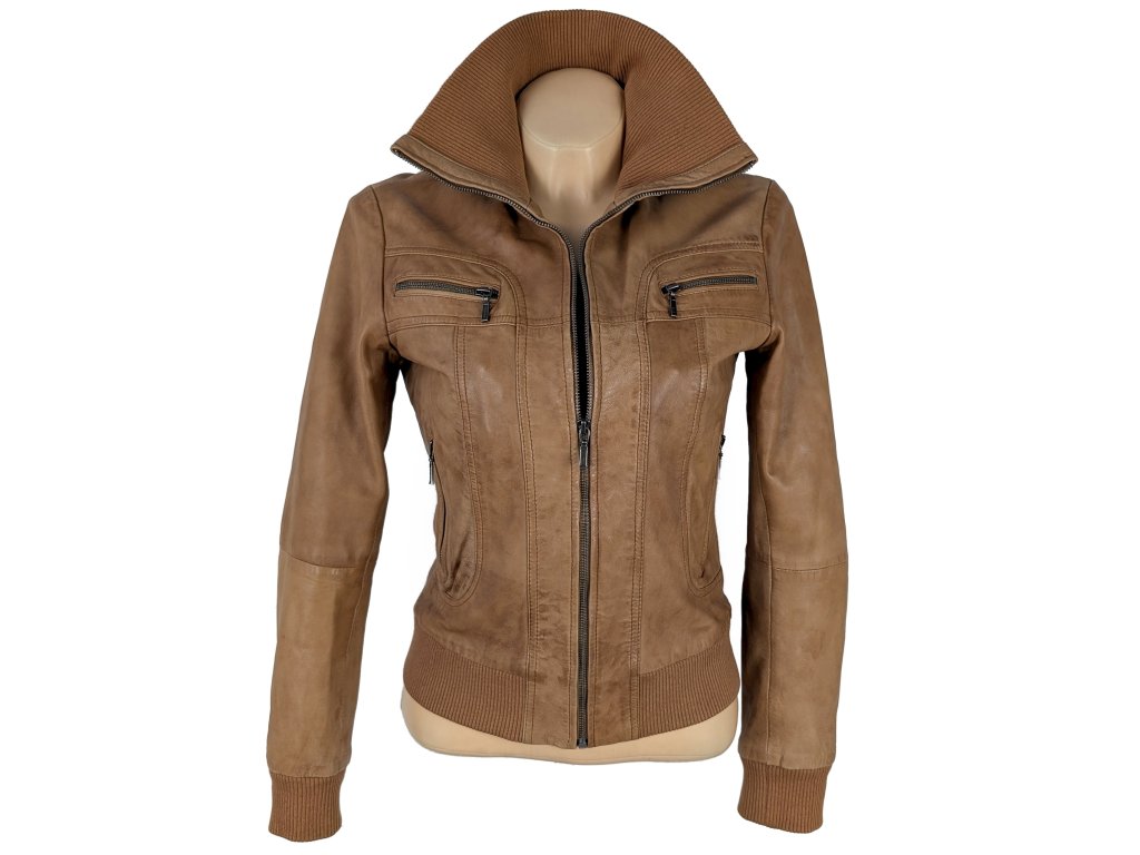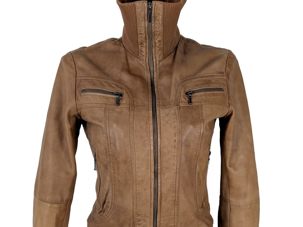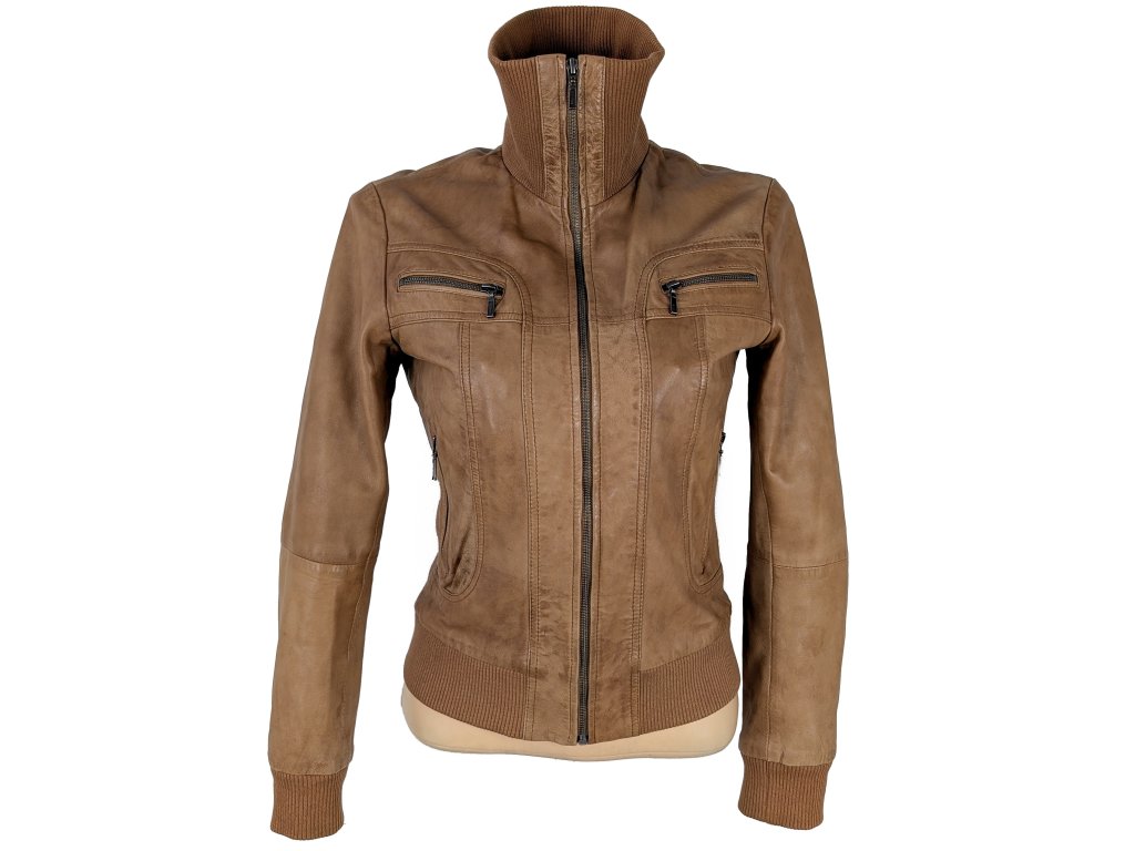 KOŽENÁ dámská hnědá bunda na zip Crossliners 38