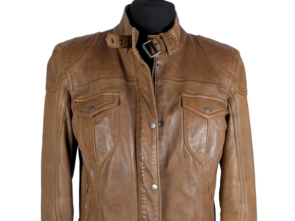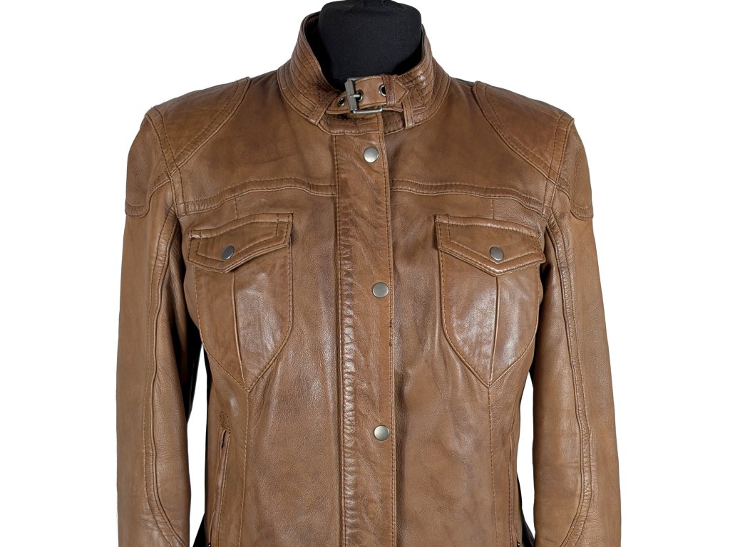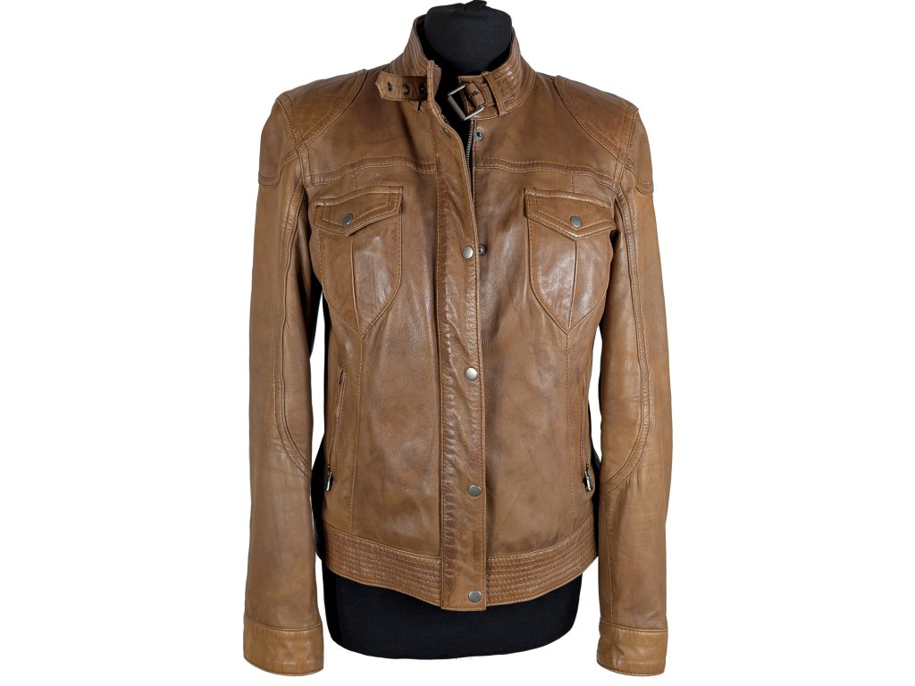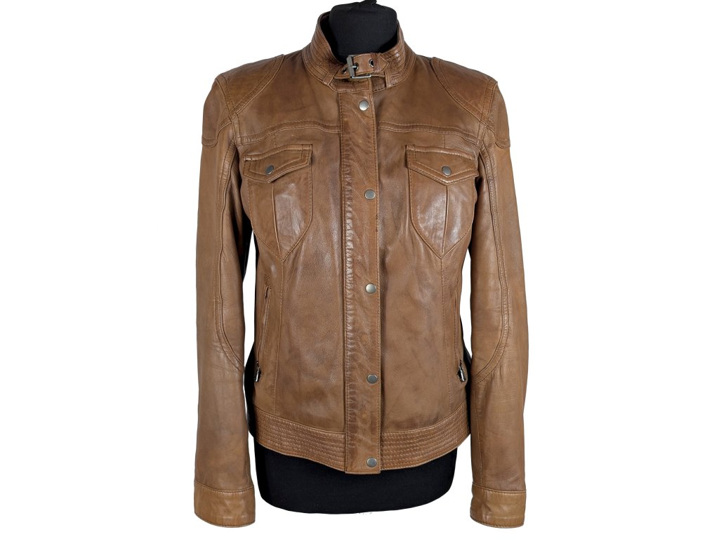 KOŽENÁ dámská hnědá bunda na zip YESSICA M