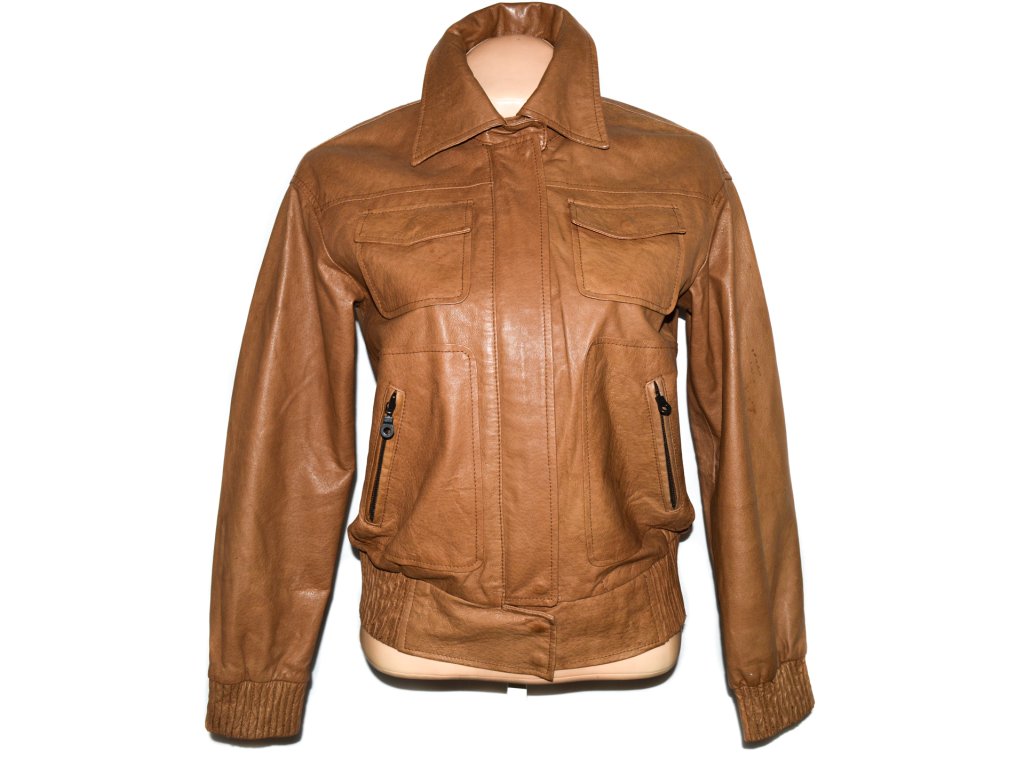 Stefanel, velikost S, dámská hnědá kožená bunda na zip, měkká kůže