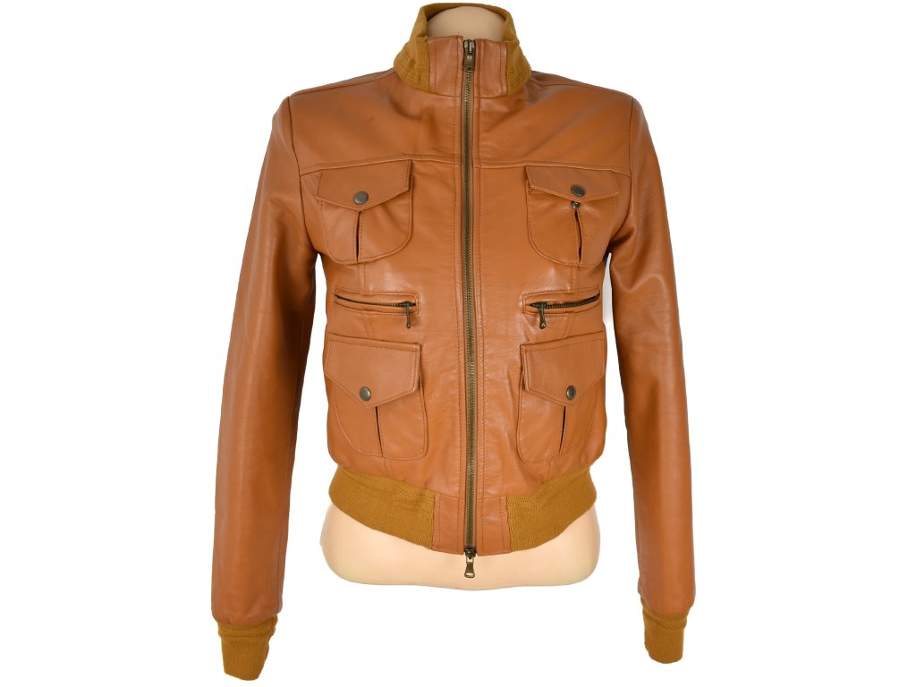 KOŽENÁ dámská hnědá zateplená bunda na zip S