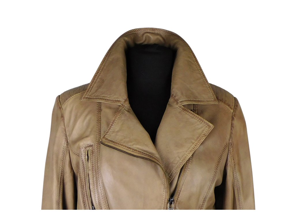 Kožená dámská kávová bunda na zip křivák KARA