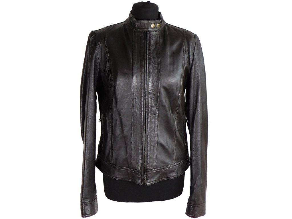 Kožená dámská měkká čokoládová bunda MANGO M*