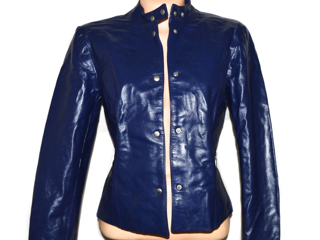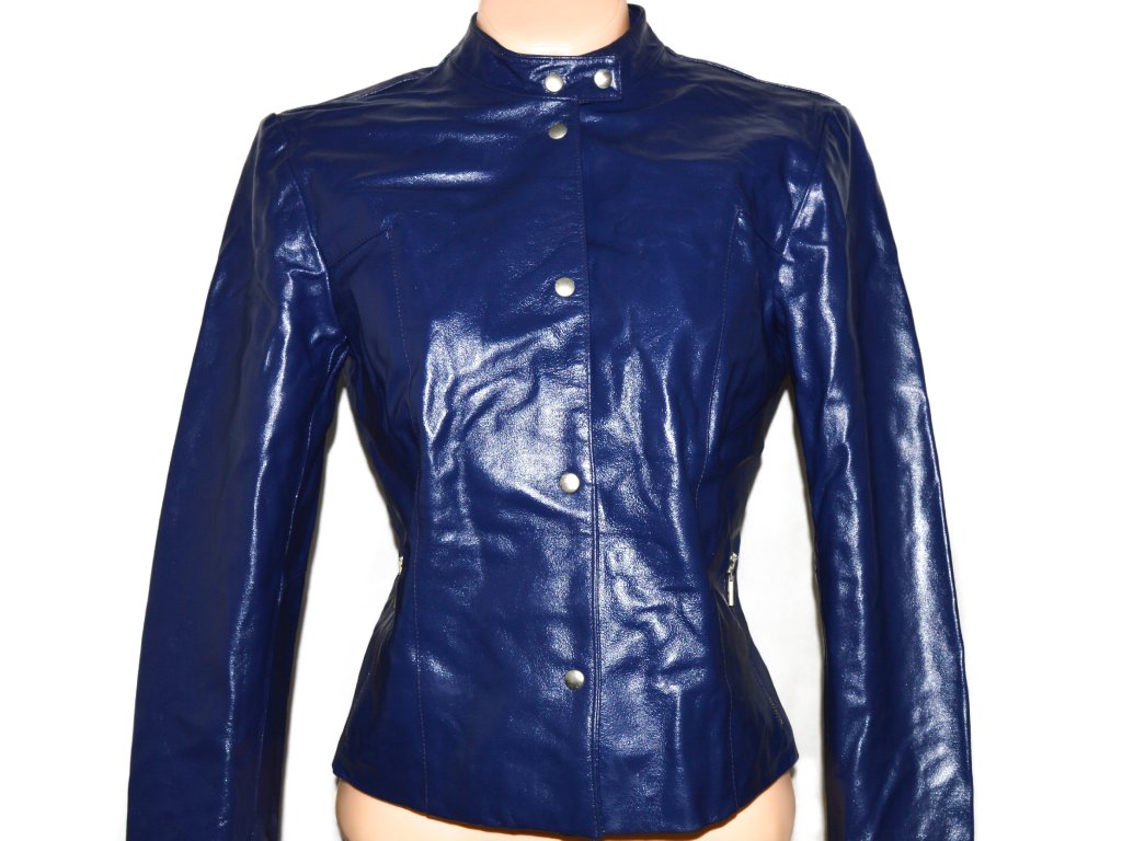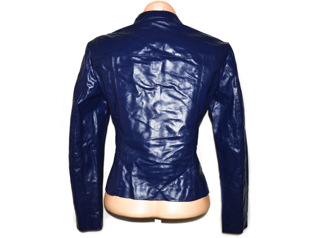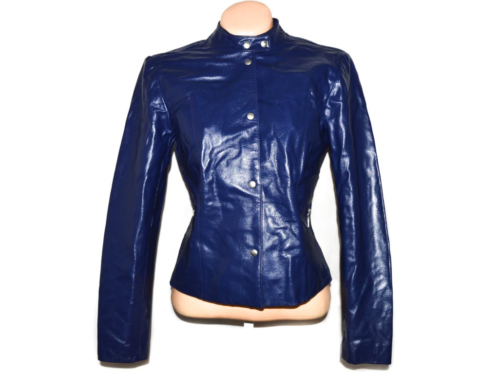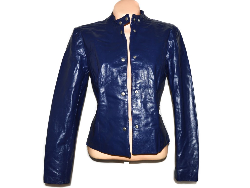 KOŽENÁ dámská modrá bunda na cvoky M