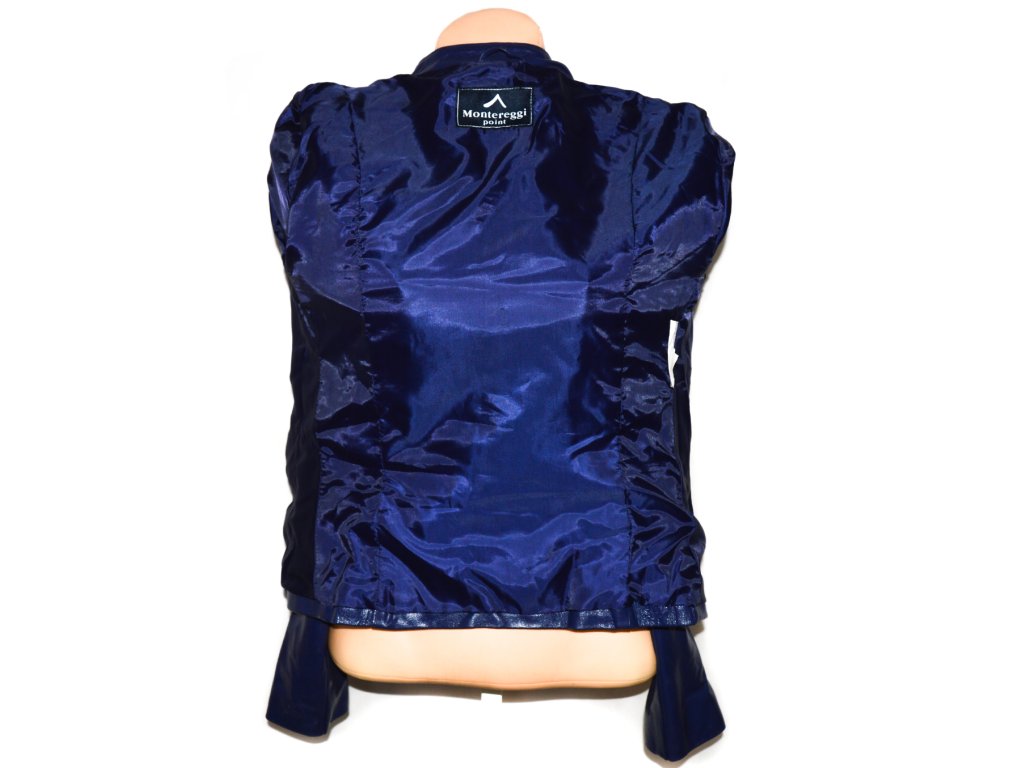 Montereggi Point, kožená dámská modrá bunda, velikost M, zapínání na cvoky