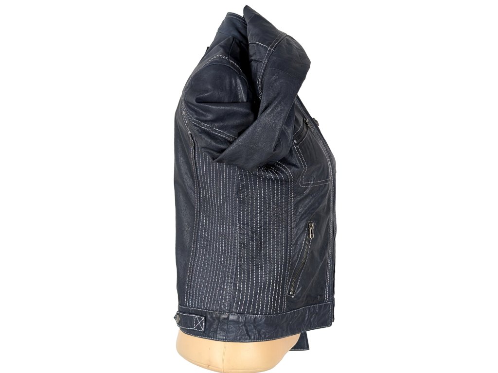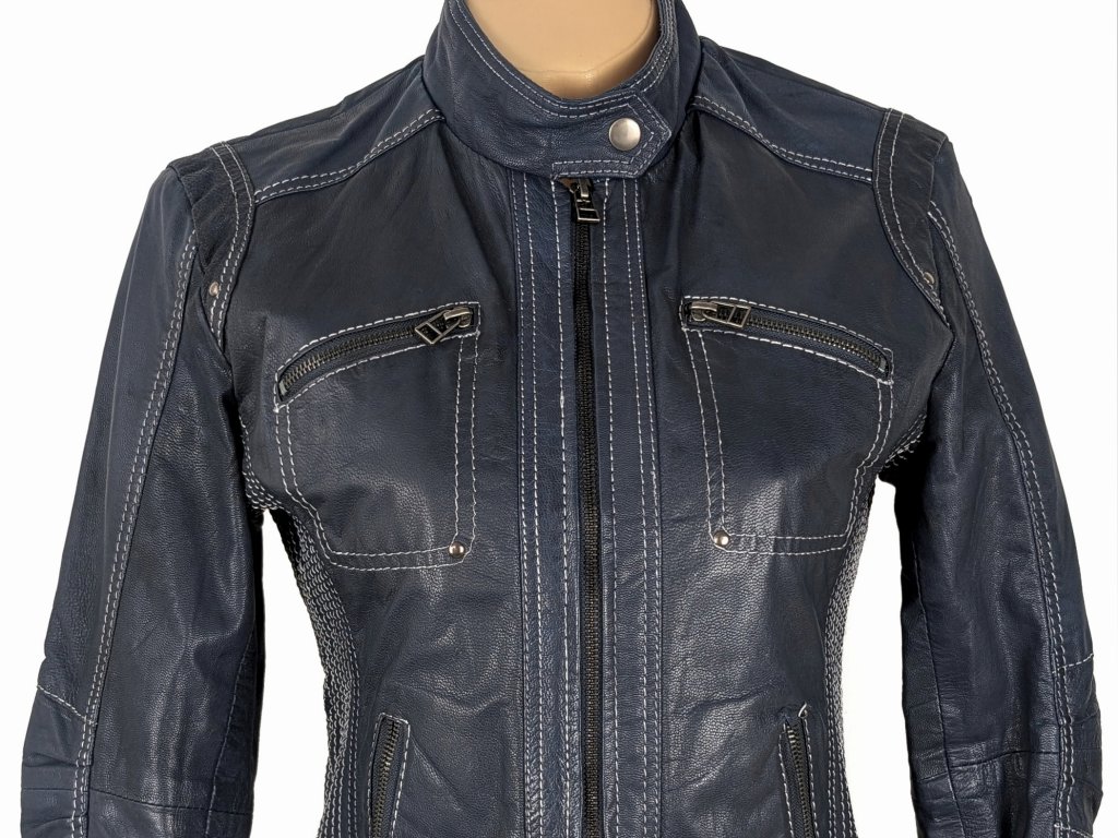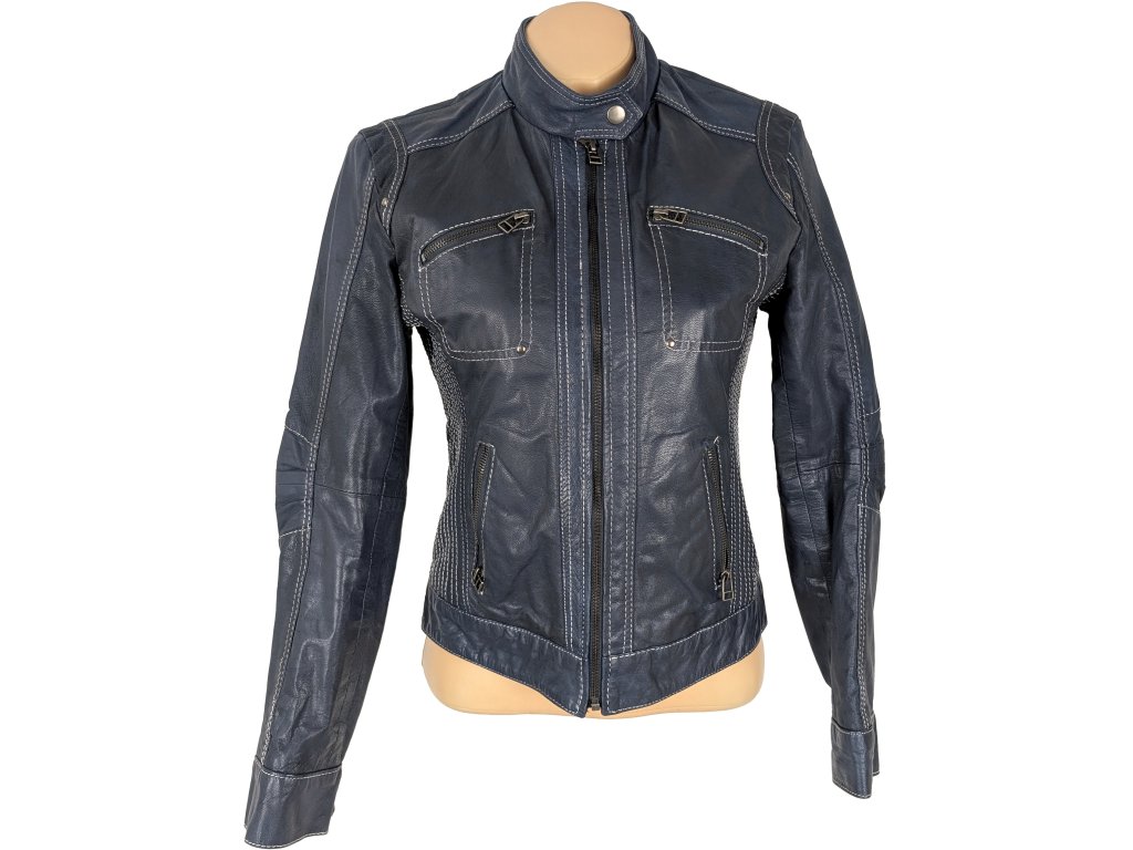 KOŽENÁ dámská modrá bunda na zip HIS M