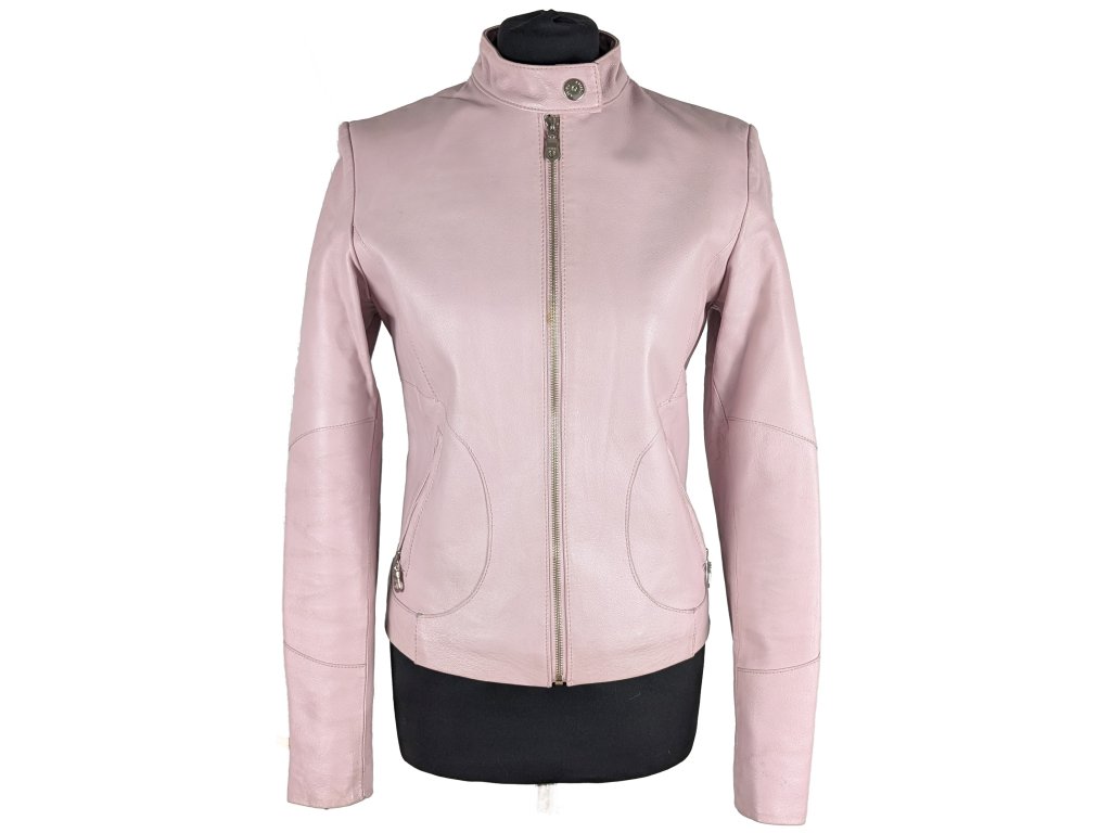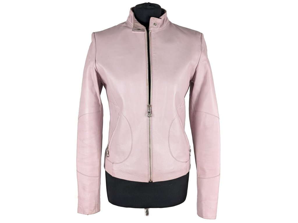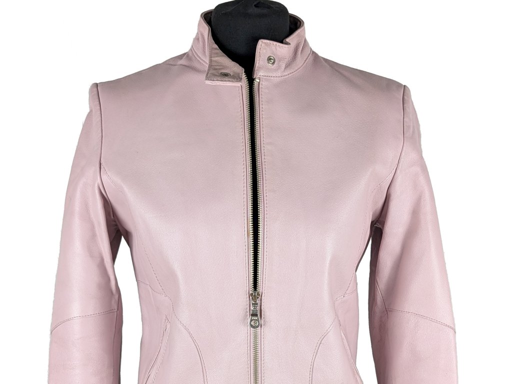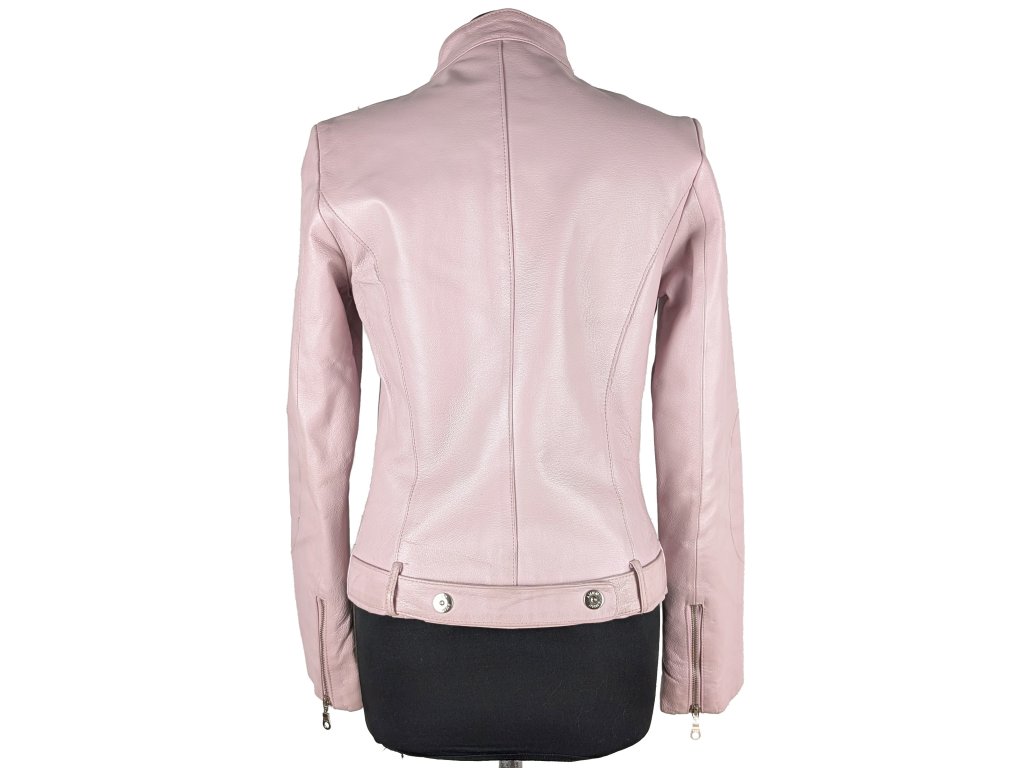 KOŽENÁ dámská růžová zateplená bunda na zip AMISU 38