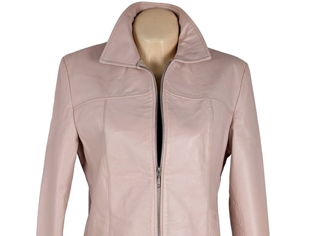 KOŽENÁ dámská růžová bunda na zip L/XL